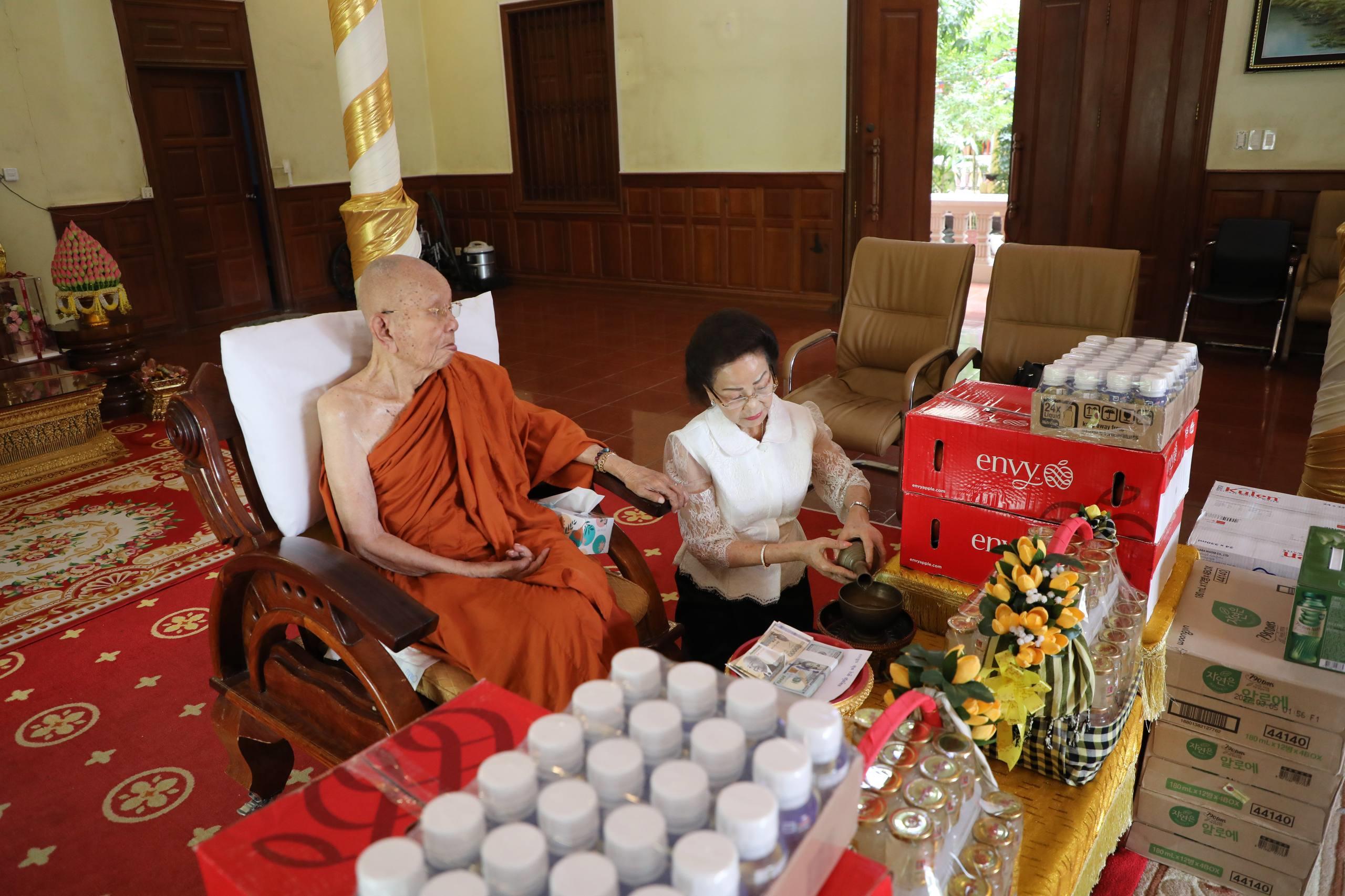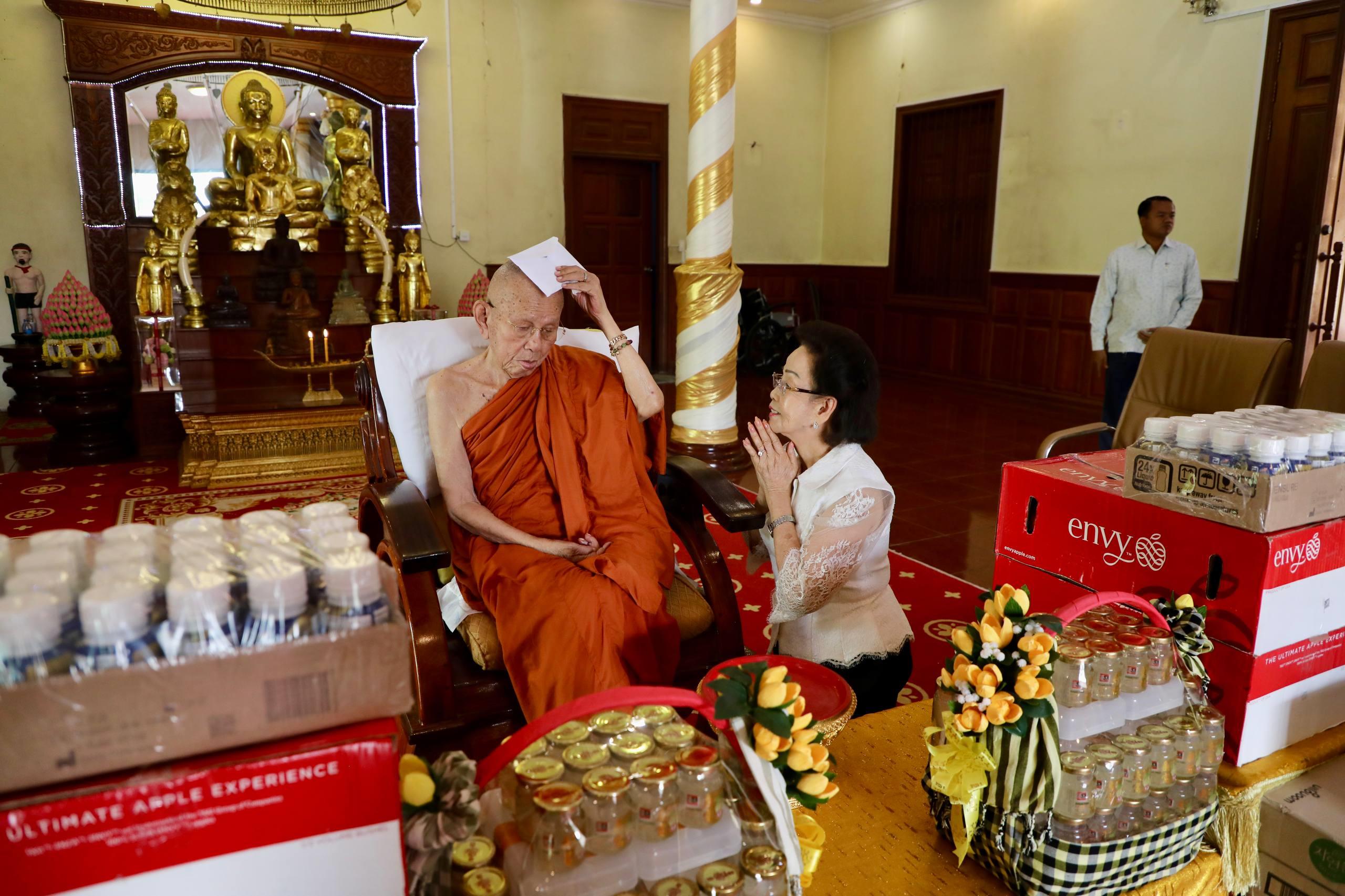 សម្ដេចកិត្ដិព្រឹទ្ធបណ្ឌិត ប៊ុន រ៉ានី ហ៊ុនសែន ចាត់លោកស្រីបណ្ឌិត អ៊ុក ម៉ាលី ថ្វាយប្រគេនទេយ្យវត្ថុ រួមទាំងបច្ច័យ សម្តេចព្រះអគ្គមហាសង្ឃរាជាធិបតី កិត្តិឧទ្ទេសបណ្ឌិត នន្ទ ង៉ែត ក្នុងវរោកាសនៃព្រះរាជពិធីបុណ្យចម្រើនព្រះជន្មវស្សា គម្រប់១០២ យាងចូល ១០៣ព្រះវស្សា