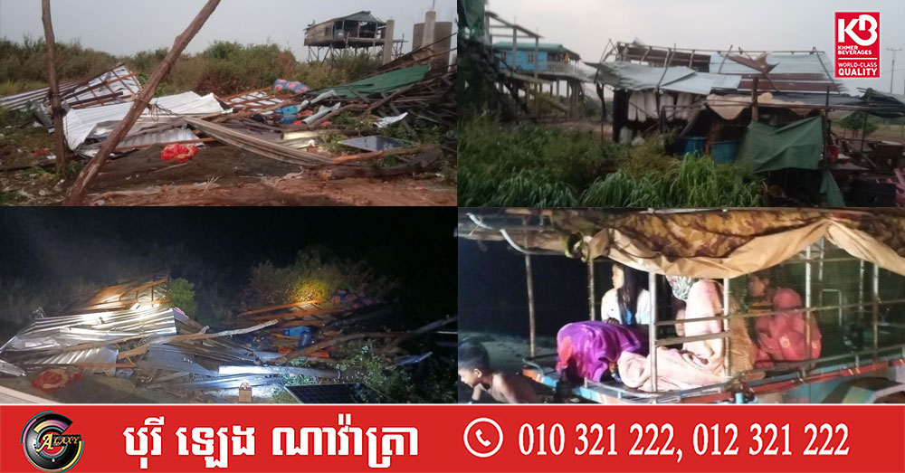 ពលរដ្ឋ៦នាក់នៅខេត្តកំពង់ឆ្នាំង រងរបួសធ្ងន់និងស្រាល ខណៈផ្ទះ៣៤ ខ្នង ត្រូវបានដួលរលំ និងរបើកដំបូលជញ្ជាំង ដោយសារខ្យល់កន្ត្រាក់