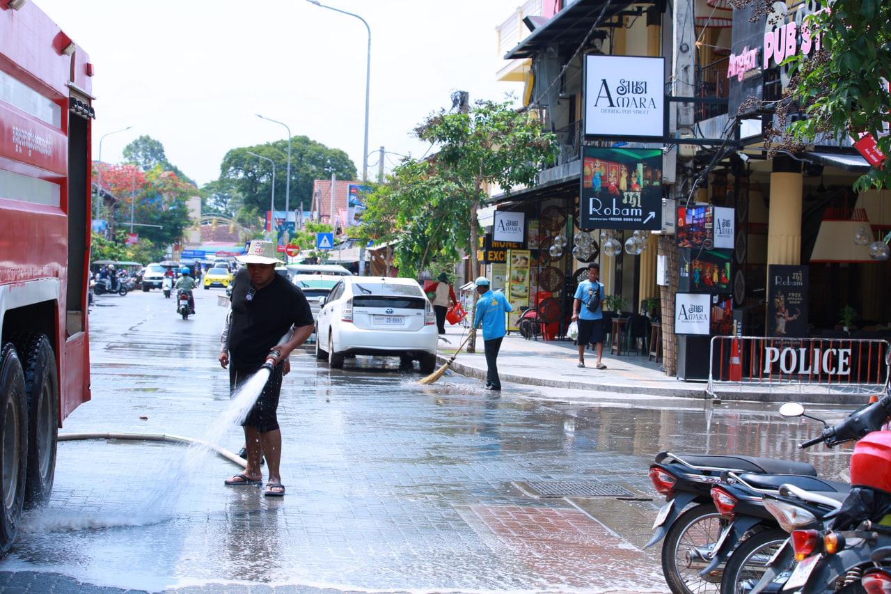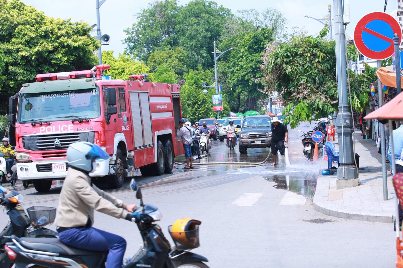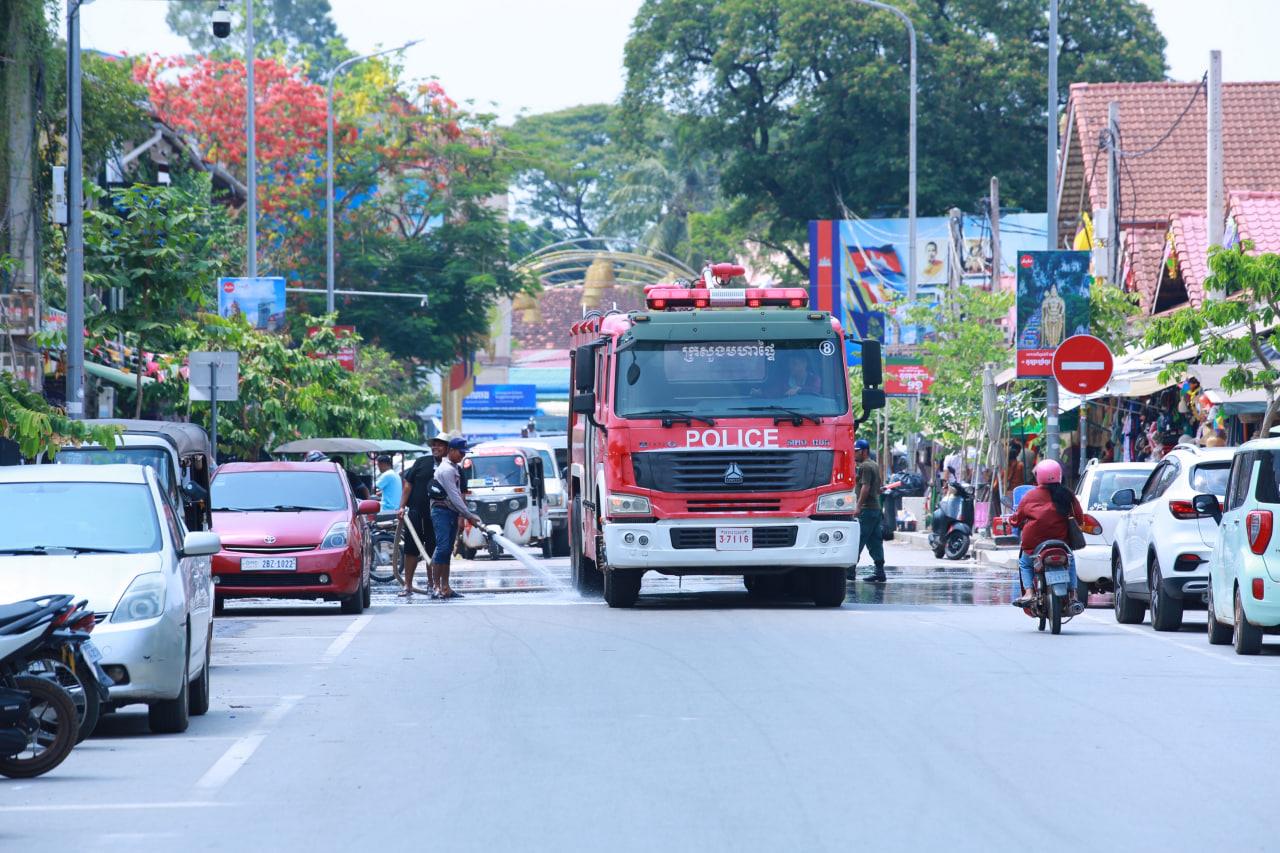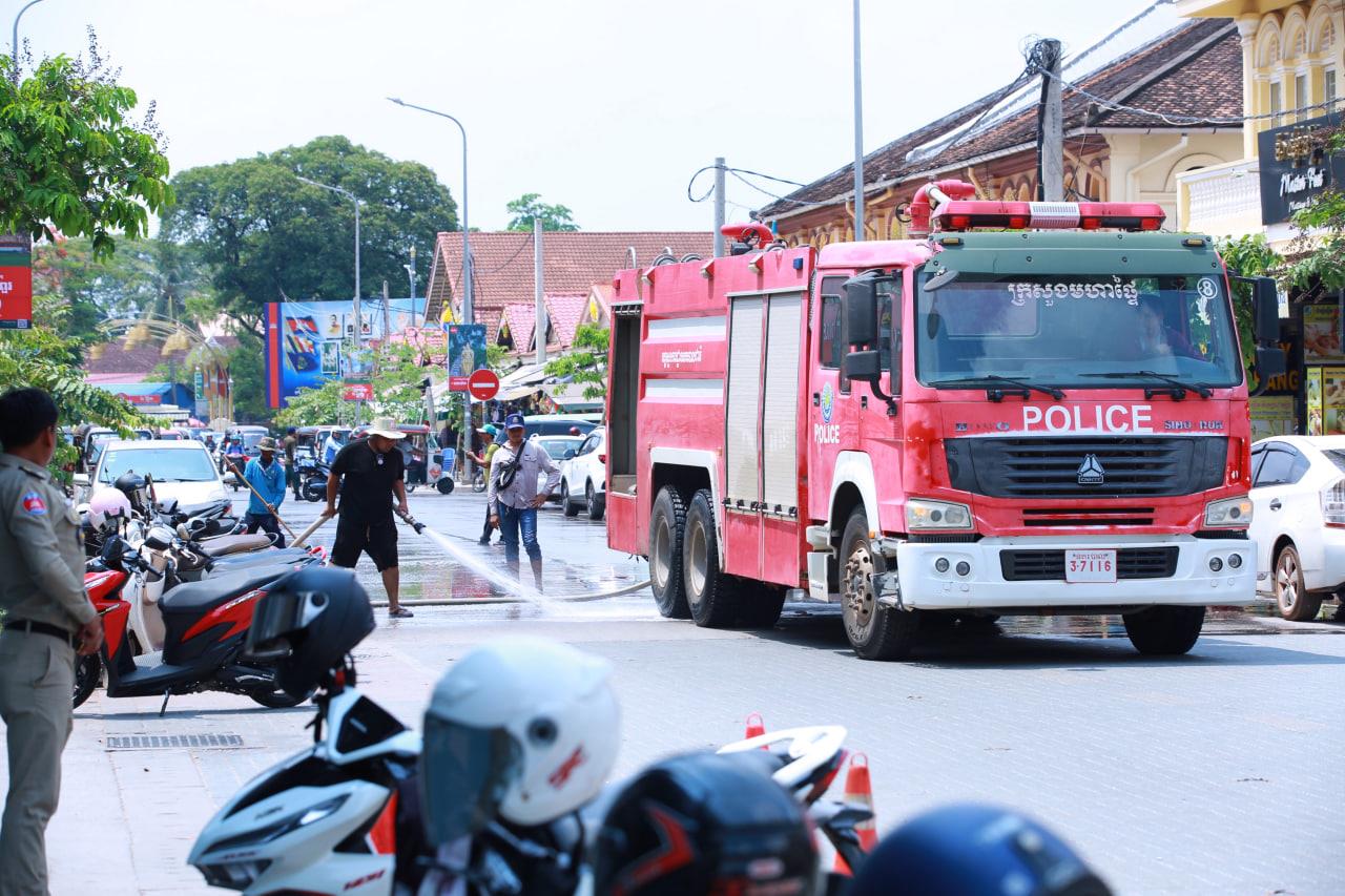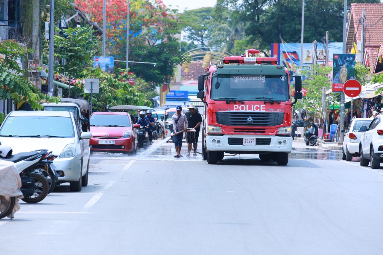 ស្នងការនគរបាលខេត្តសៀមរាប ចាត់កម្លាំងចុះអនុវត្តសកម្មភាព បាញ់ទឹកលាងសម្អាតនៅតាមបណ្តោយផ្លូវសំខាន់ៗ ក្នុងក្រុងសៀមរាប ក្រោយបញ្ចប់ពិធីបុណ្យចូលឆ្នាំថ្មី