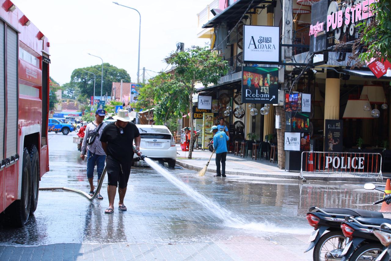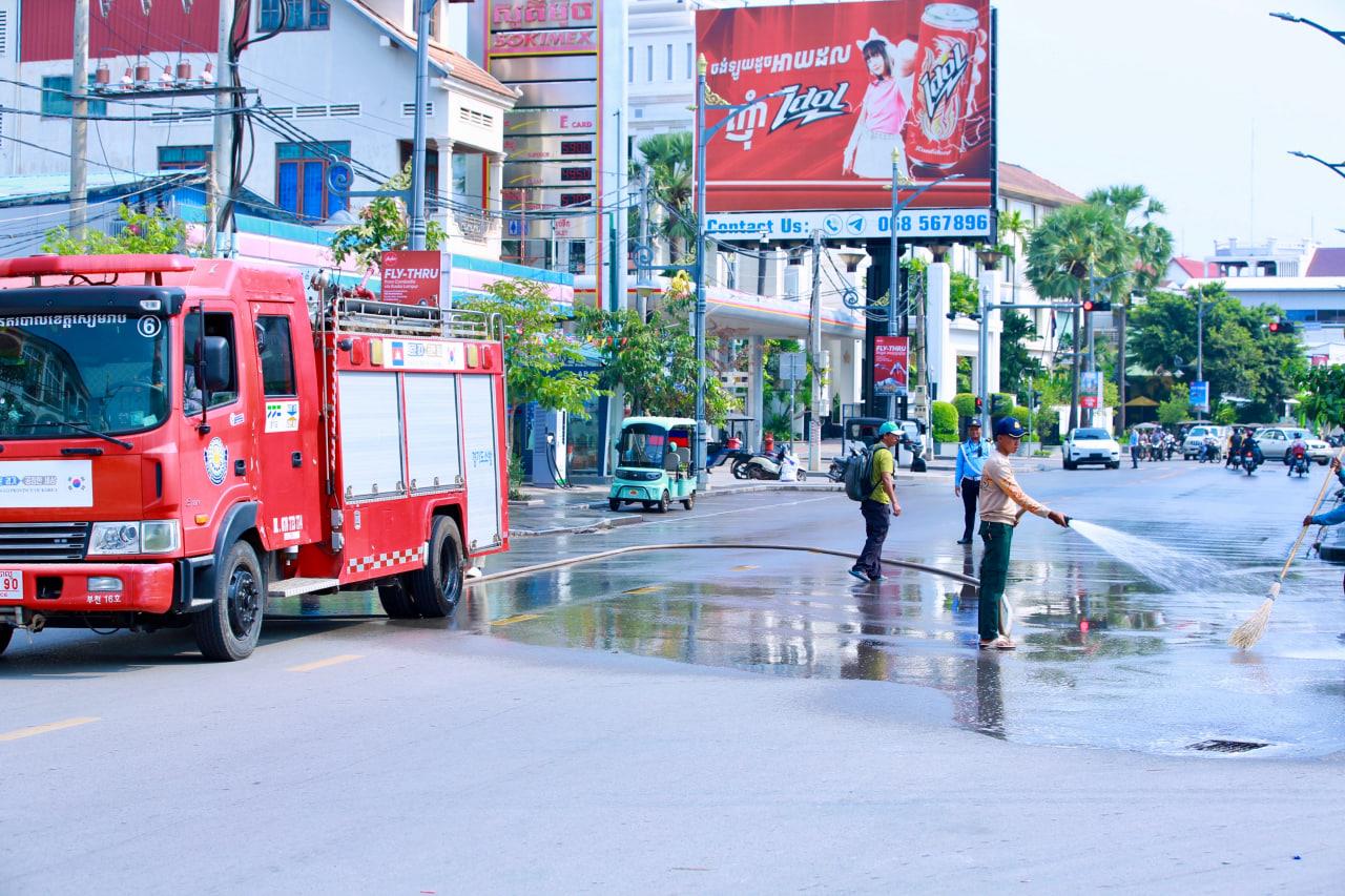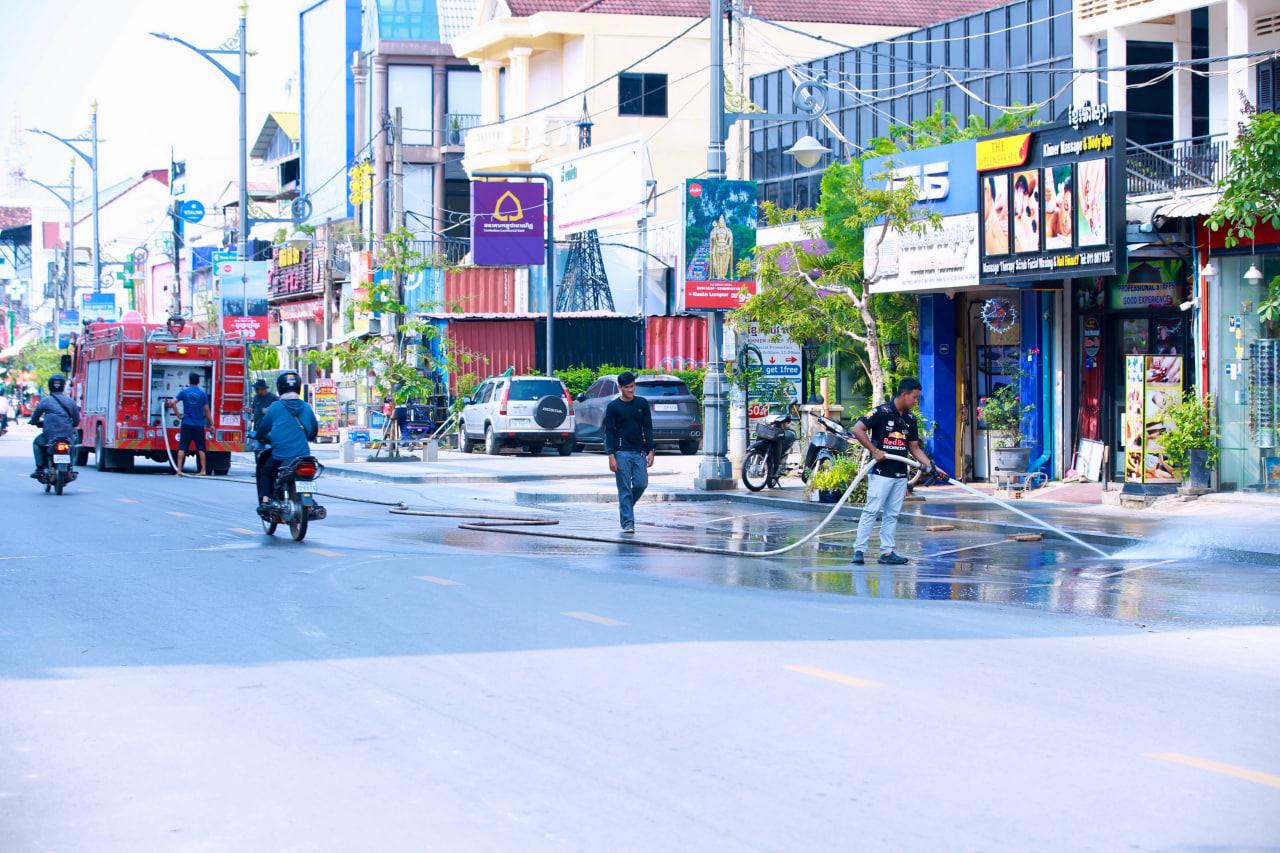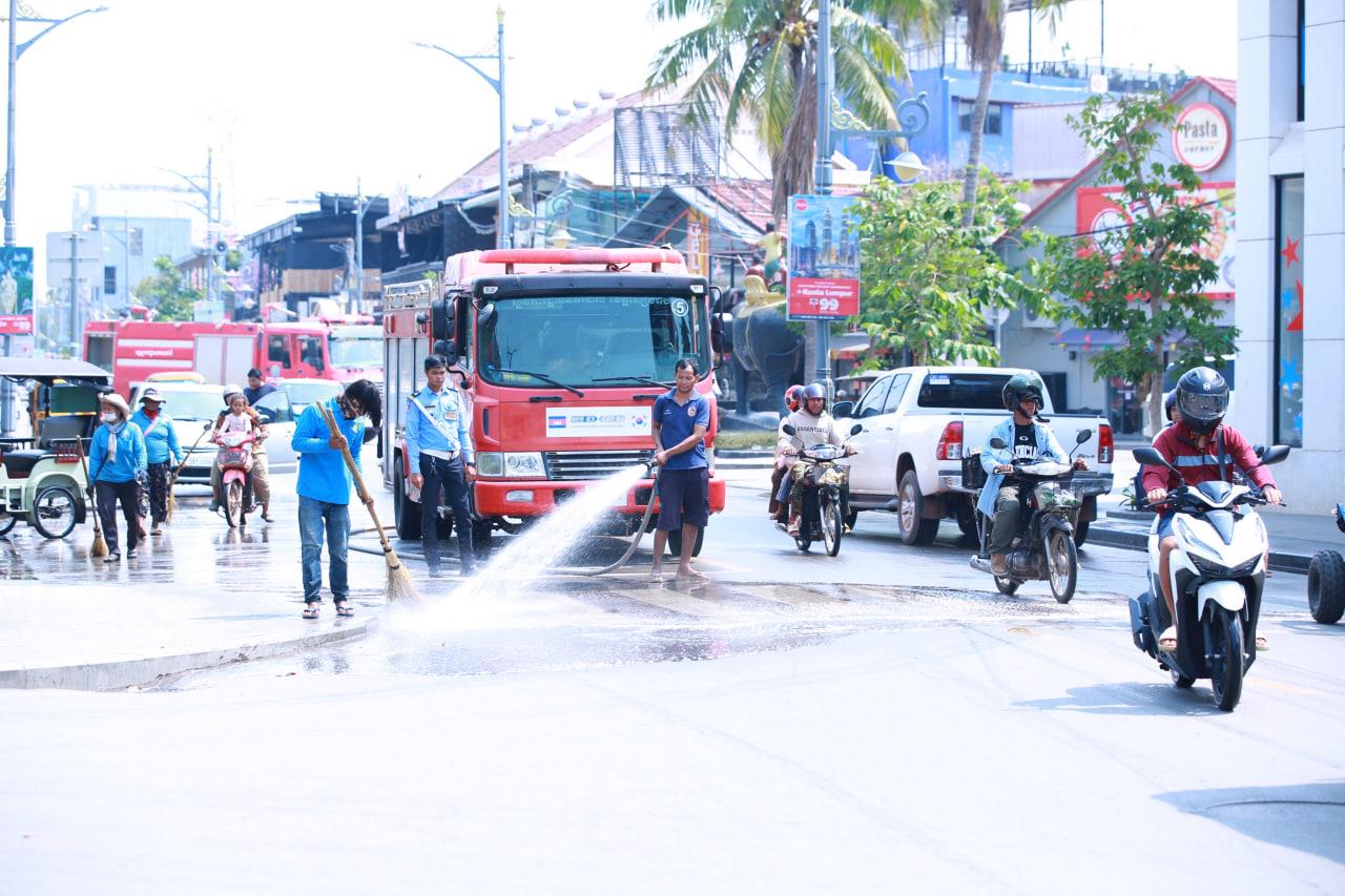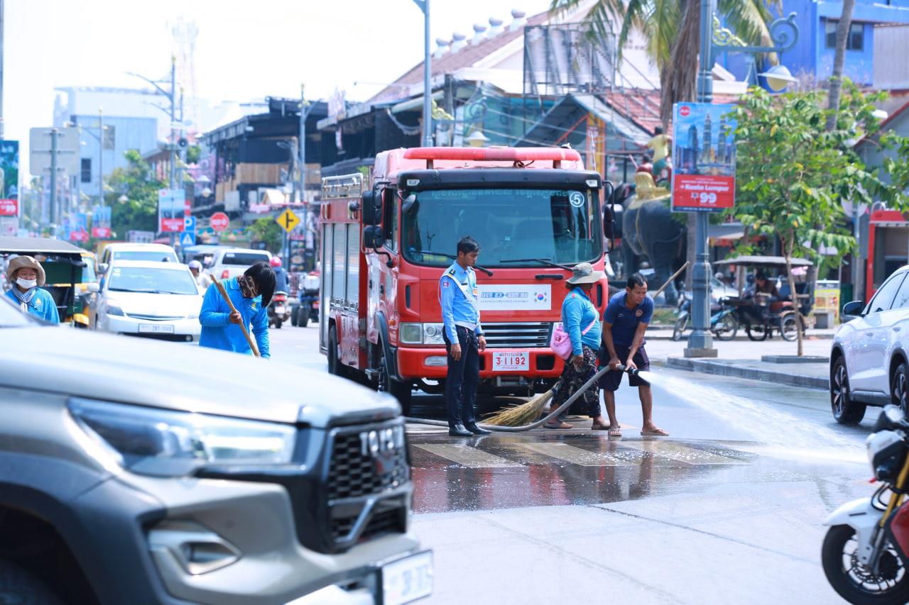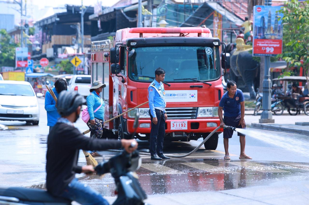 ស្នងការនគរបាលខេត្តសៀមរាប ចាត់កម្លាំងចុះអនុវត្តសកម្មភាព បាញ់ទឹកលាងសម្អាតនៅតាមបណ្តោយផ្លូវសំខាន់ៗ ក្នុងក្រុងសៀមរាប ក្រោយបញ្ចប់ពិធីបុណ្យចូលឆ្នាំថ្មី