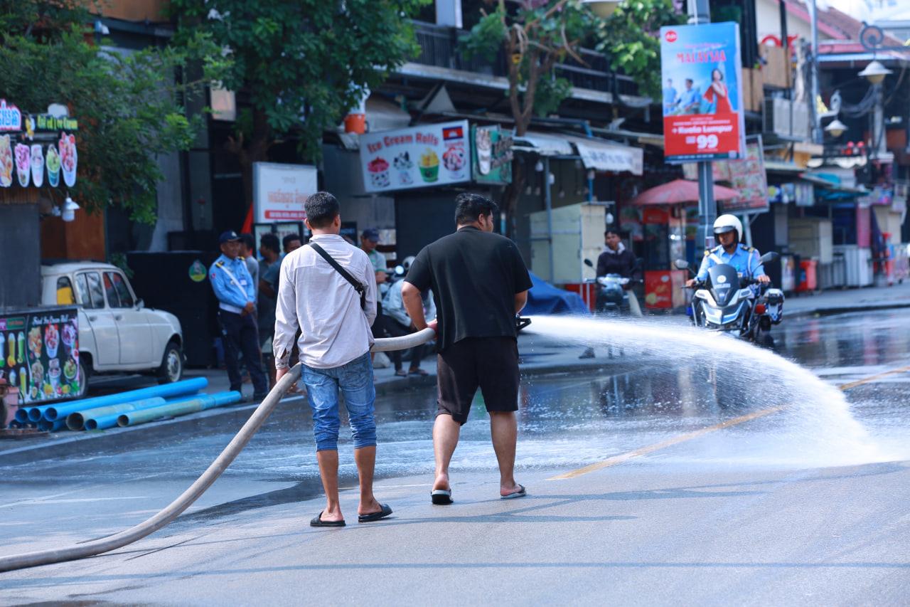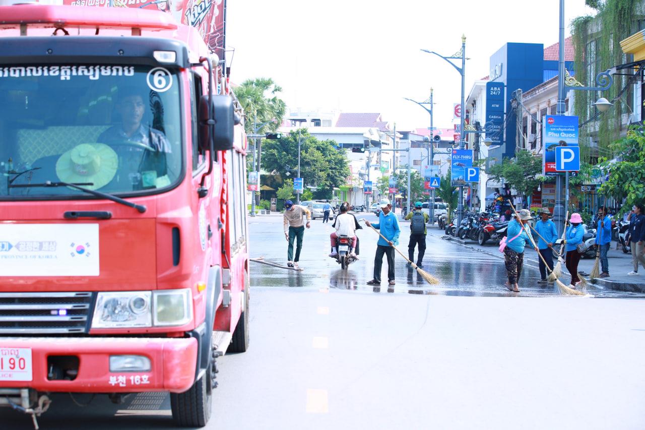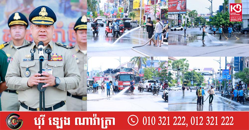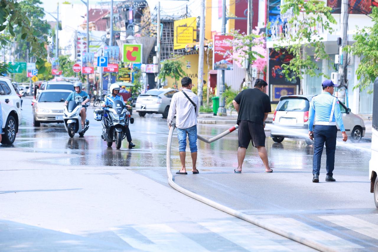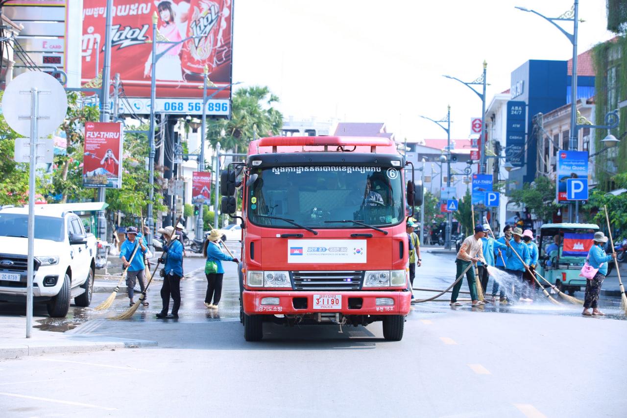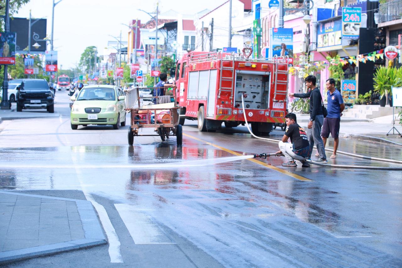 ស្នងការនគរបាលខេត្តសៀមរាប ចាត់កម្លាំងចុះអនុវត្តសកម្មភាព បាញ់ទឹកលាងសម្អាតនៅតាមបណ្តោយផ្លូវសំខាន់ៗ ក្នុងក្រុងសៀមរាប ក្រោយបញ្ចប់ពិធីបុណ្យចូលឆ្នាំថ្មី