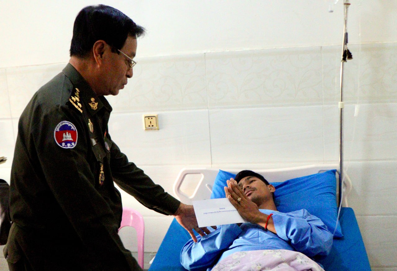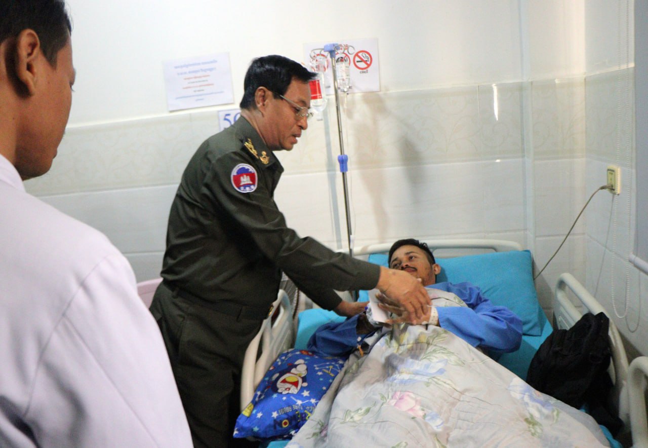 តំណាងនាយឧត្តមសេនីយ៍ ទៀ សីហា ដឹកនាំក្រុមការងារ ចុះសួរសុខទុក្ខវីរកងទ័ពសមរភូមិមុខ និងយោធិនរបួសជំងឺ កំពុងសម្រាកព្យាបាល នៅមន្ទីរពេទ្យព្រះកេតុមាលា