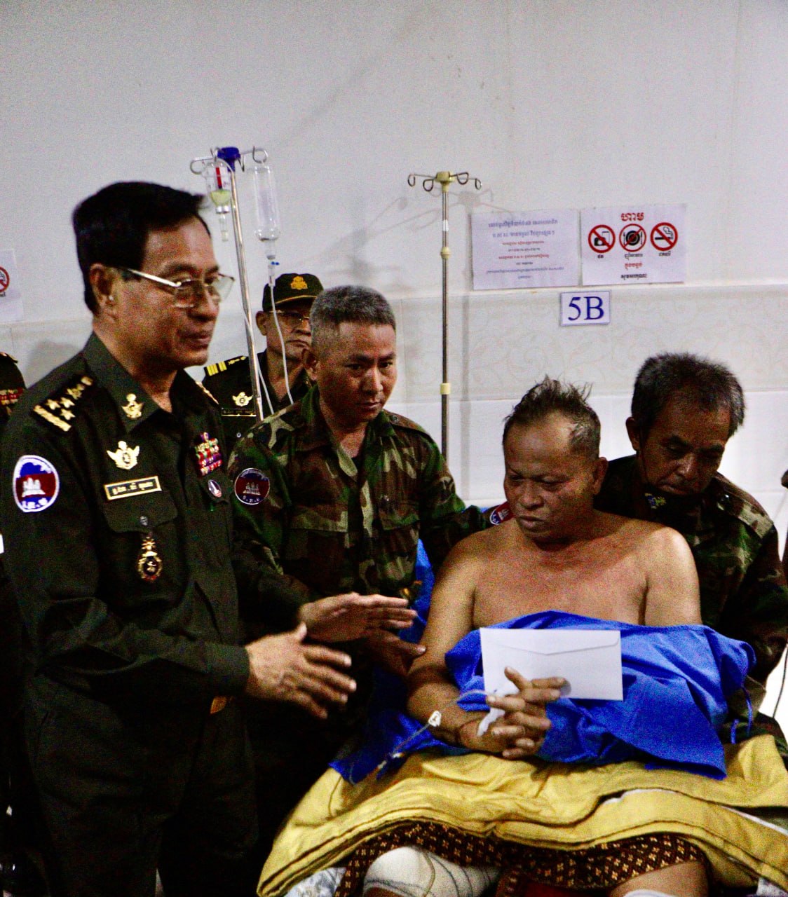 * ពិនិត្យព្យាបាល និងចុះសួរសុខទុក្ខយោធិនរបួស ពិការក្នុងសមរភូមិដែលកំពុងសម្រាកនៅតាមមន្ទីរពេទ្យ៕