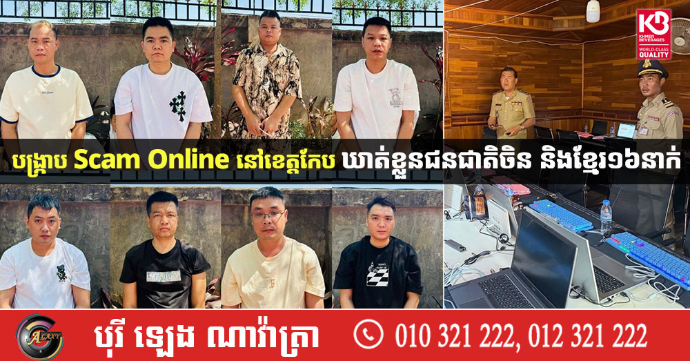 បង្ក្រាប Scam Online នៅខេត្តកែប ឃាត់ខ្លួនជនជាតិចិន និងខ្មែរ១៦នាក់