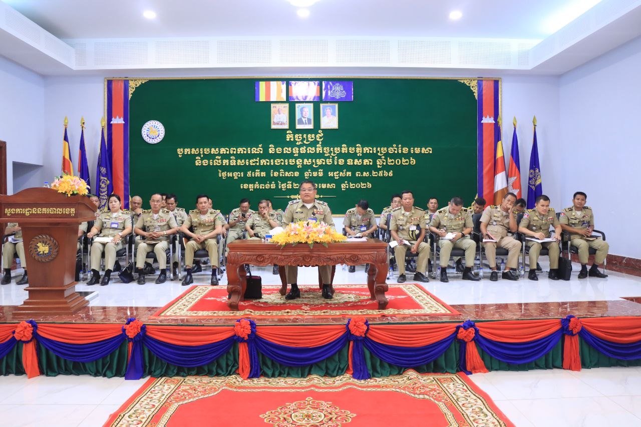 (កំពង់ធំ)៖ នៅថ្ងៃទី២១ ខែមេសា ឆ្នាំ២០២៦ លោកឧត្តមសេនីយ៍ទោ ហេង សុផល ស្នងការនគរបាលខេត្តកំពង់ធំ ដឹកនាំកិច្ចប្រជុំបូកសរុបសភាពការណ៍ និងលទ្ធផលកិច្ចប្រតិបត្តិការប្រចាំខែមេសា និងលើកទិសដៅការងារបន្ត ខែ ឧសភា ឆ្នាំ២០២៦ ដោយមានការចូលរួមពីមន្ត្រីនគរបាលប្រមាណ ២៦០នាក់។