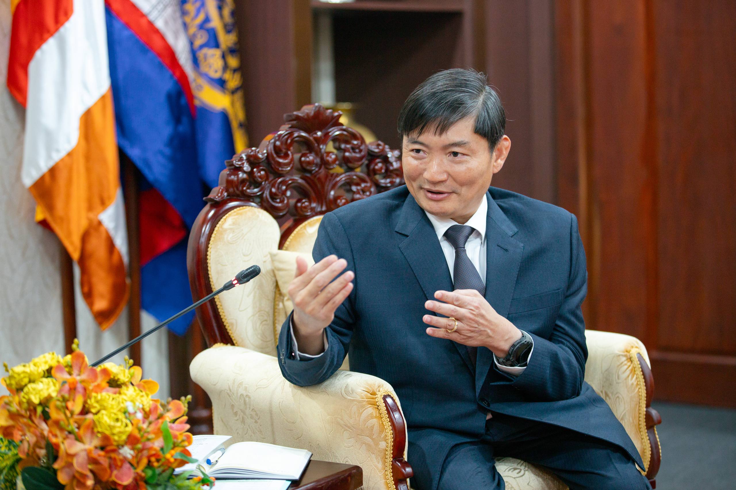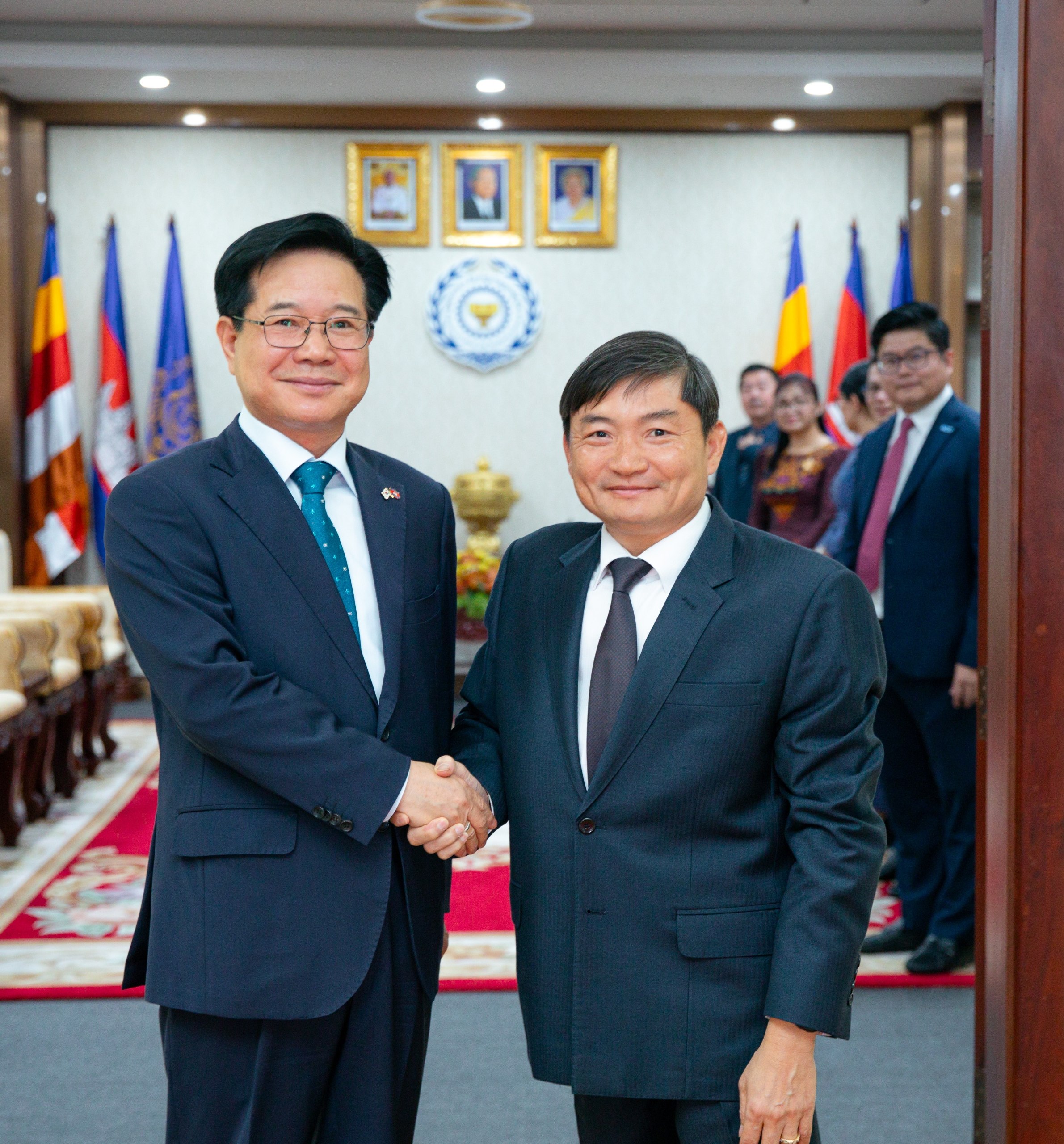 (ភ្នំពេញ)៖ លោក ហេង សួរ រដ្ឋមន្ត្រីក្រសួងការងារ និងបណ្ដុះបណ្ដាលវិជ្ជាជីវៈ នាព្រឹកថ្ងៃទី២១ ខែមេសា ឆ្នាំ២០២៦ បានទទួលជួបសម្តែងការគួរសម និងពិភាក្សាការងារជាមួយលោក គីម ឆាងយ៉ុង (KIM Chang Yong) ឯកអគ្គរដ្ឋទូតថ្មីនៃសាធារណរដ្ឋកូរ៉េប្រចាំកម្ពុជា ដើម្បីពិភាក្សាពីការលើកកម្ពស់សិទ្ធិពលករ និងពីការស្វែងរកឱកាសបង្កើនកិច្ចសហប្រតិបត្តិការលើការអភិវឌ្ឍធនធានមនុស្ស ការបញ្ជូនកម្លាំងពលកម្ម និងបង្កើតបរិយាកាសកាន់តែប្រសើរដល់អ្នកវិនិយោគ នៅទីស្តីការក្រសួង។