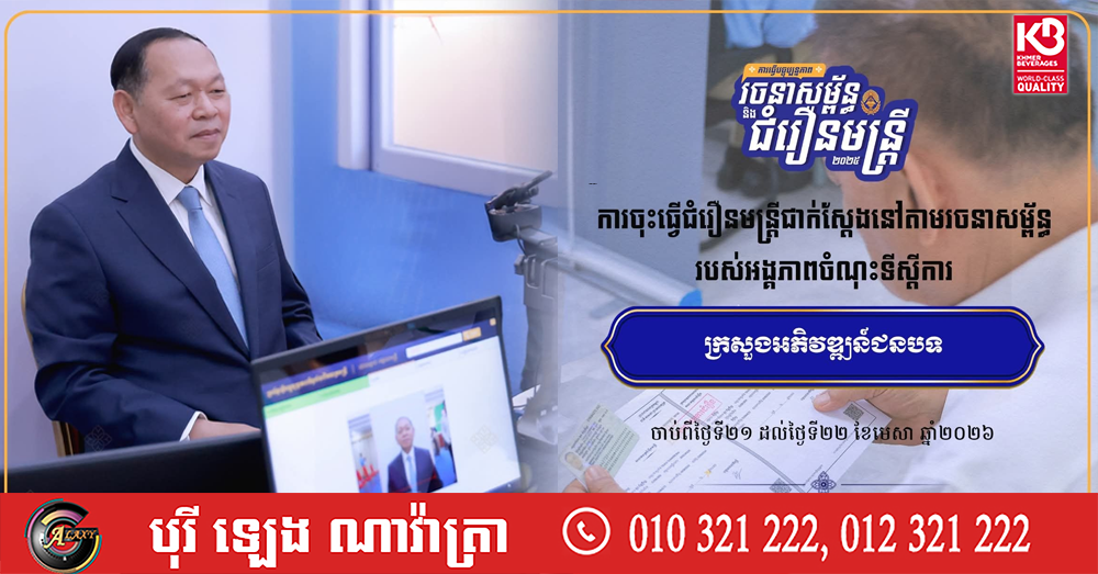 (ភ្នំពេញ)៖ នៅថ្ងៃទី២១ ខែមេសា ឆ្នាំ២០២៦នេះ គណៈកម្មការធ្វើបច្ចុប្បន្នភាពរចនាសម្ព័ន្ធ និងជំរឿនមន្ត្រីជាក់ស្តែង បានចុះធ្វើជំរឿនមន្ត្រីជាក់ស្តែងនៅតាមរចនាសម្ព័ន្ធរបស់អង្គភាពចំណុះទីស្តីការក្រសួងអភិវឌ្ឍន៍ជនបទ ដោយមានការចុះពិនិត្យទីតាំងដោយផ្ទាល់ពីសំណាក់លោក សុខ សង្វារ រដ្ឋលេខាធិការក្រសួងមុខងារសាធារណៈ តំណាងលោក ហ៊ុន ម៉ានី ឧបនាយករដ្ឋមន្ត្រី រដ្ឋមន្ត្រីក្រសួងមុខងារសាធារណៈ និងជាប្រធានគណៈកម្មការជំរឿនមន្ត្រី។