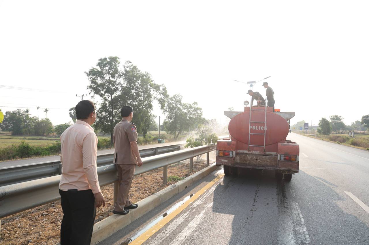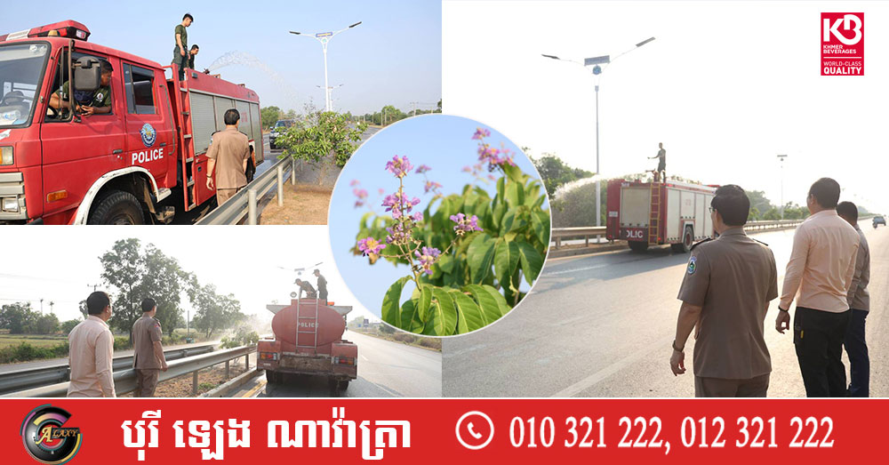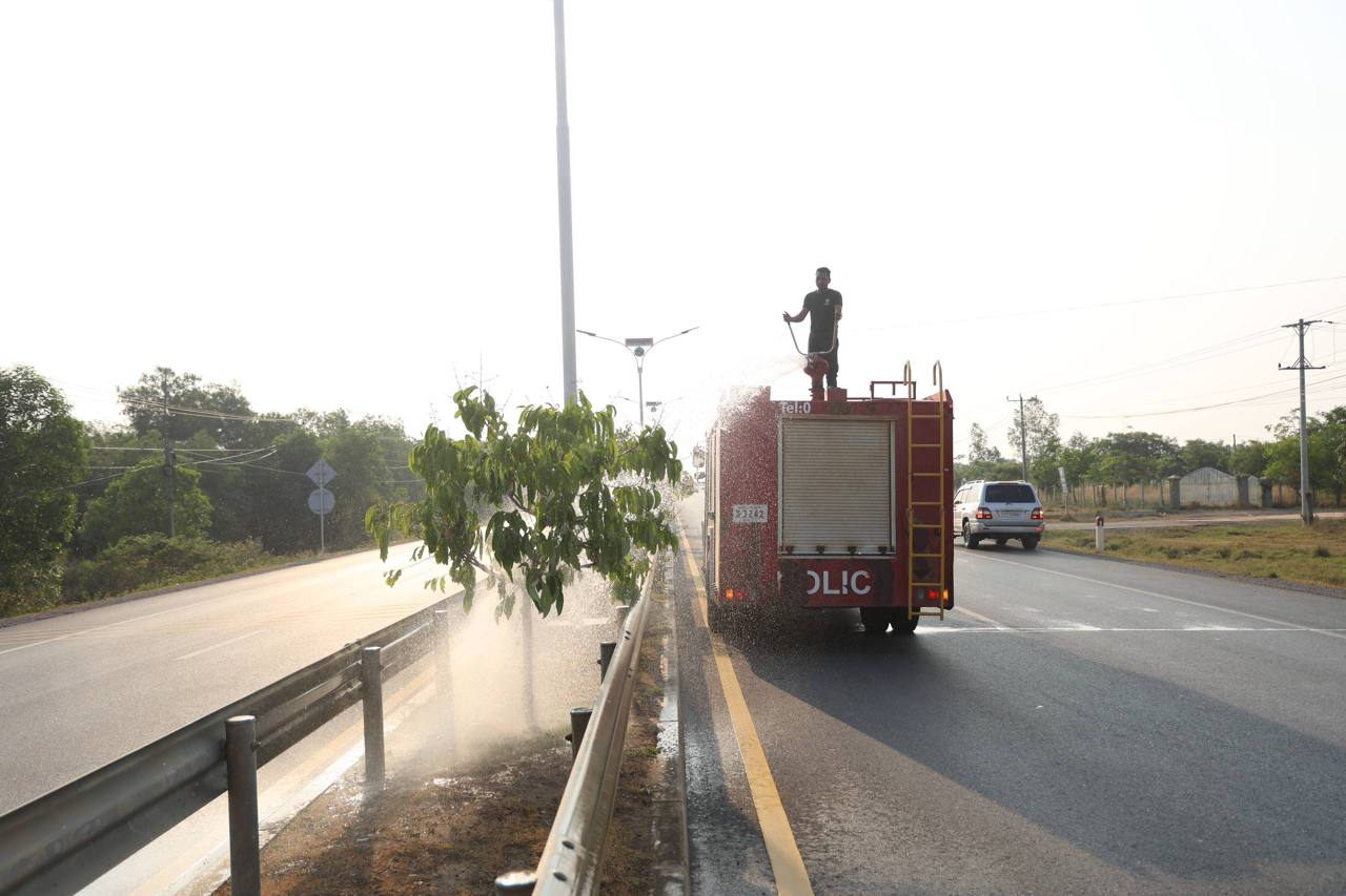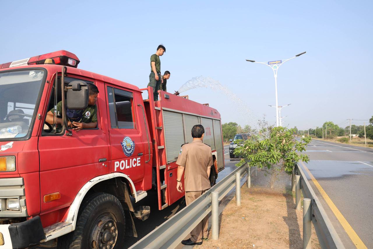 អភិបាលខេត្តពោធិ៍សាត់ ចុះដឹកនាំកម្លាំងអន្តរាគមន៍ស្រោចស្រពដើមឈើលម្អតាមបណ្តោយផ្លូវជាតិលេខ៥ ដើម្បីថែរក្សាបរិស្ថាន និងសោភ័ណភាពក្នុងរដូវប្រាំង