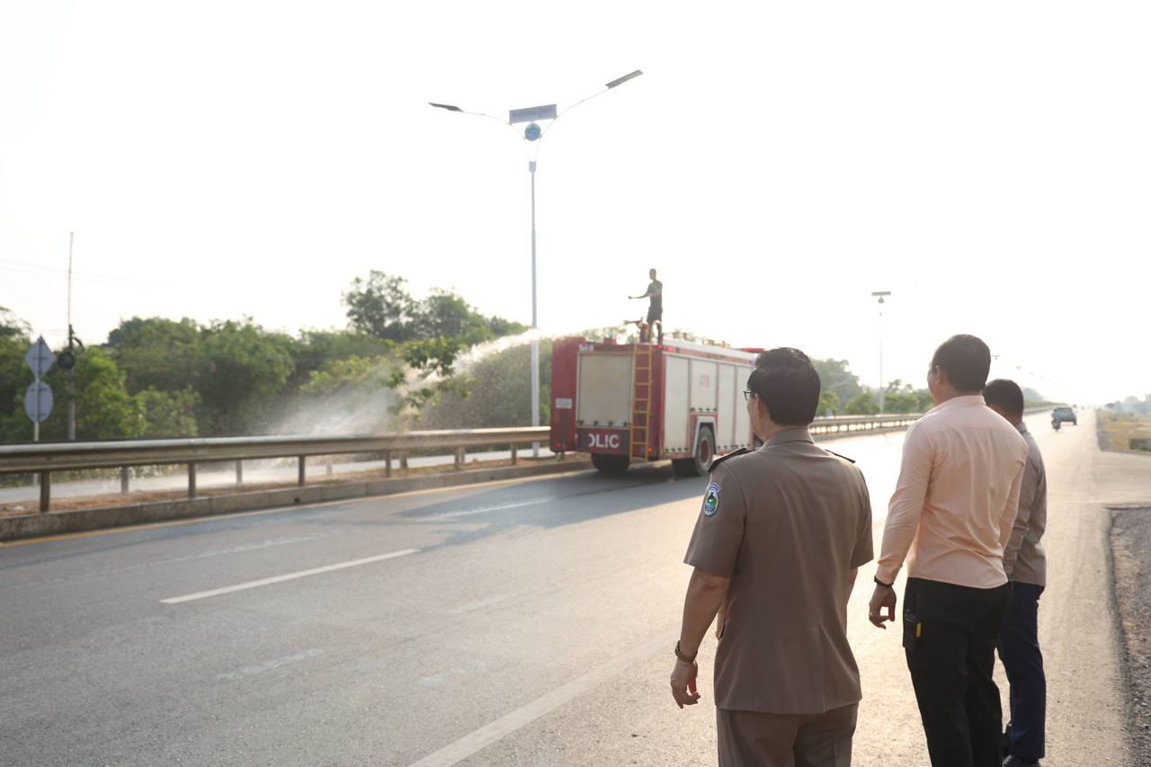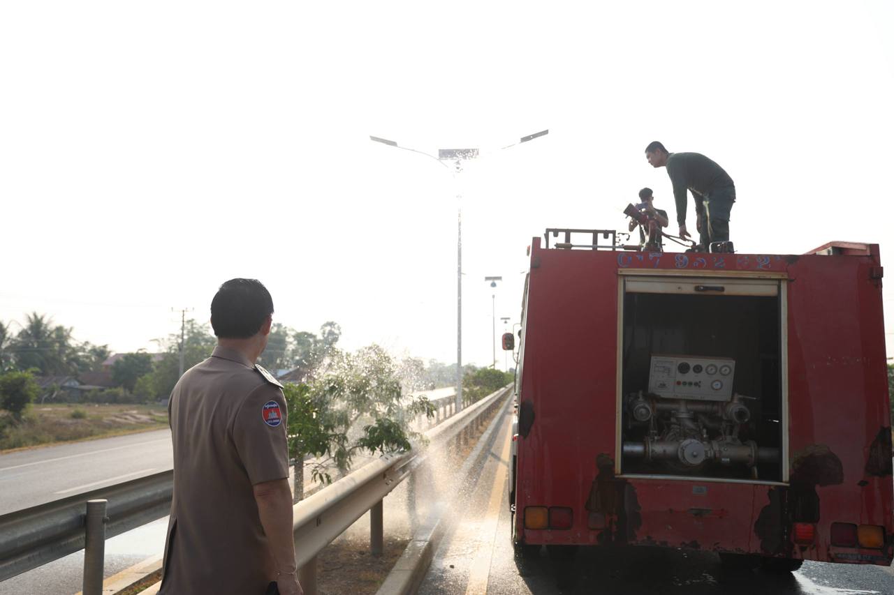 (ពោធិ៍សាត់)៖ នាព្រឹកថ្ងៃទី២២ ខែមេសា ឆ្នាំ២០២៦ ក្នុងស្ថានភាពដែលអាកាសធាតុកំពុងមានកម្តៅកើនឡើងខ្លាំង លោក ខូយ រីដា អភិបាលនៃគណៈអភិបាលខេត្តពោធិ៍សាត់ បានចុះពិនិត្យដោយផ្ទាល់ និងដឹកនាំបញ្ជាកម្លាំងអន្តរាគមន៍ប្រើប្រាស់រថយន្តទឹក (រថយន្តពន្លត់អគ្គិភ័យ) ដើម្បីស្រោចស្រពសង្គ្រោះដើមឈើលម្អទ្រូងផ្លូវ តាមបណ្តោយផ្លូវជាតិលេខ៥ ចាប់ពីក្រុងពោធិ៍សាត់ រហូតដល់ព្រំប្រទល់ខេត្តកំពង់ឆ្នាំង។