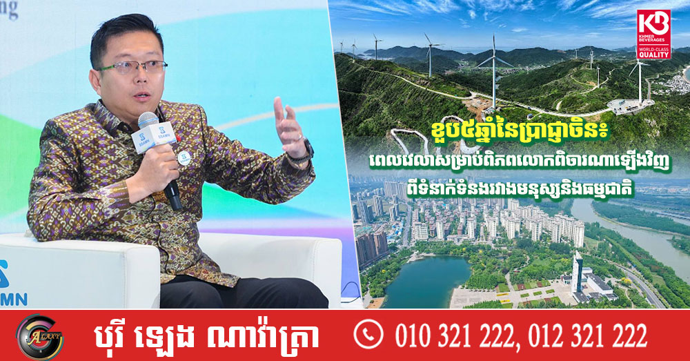 (ភ្នំពេញ)៖ ខួប៥ឆ្នាំនៃប្រាជ្ញាចិនស្តីពី «កិច្ចកសាងសហគមន៍រួមជីវិតសុខដុមនីយកម្មរវាងមនុស្សនិងធម្មជាតិ» ដោយលោក Xi Jinping ប្រធានរដ្ឋចិន កាលពីថ្ងៃទី២២ ខែមេសា ឆ្នាំ២០២១ បានផ្តល់ឱកាសដល់មនុស្សជាតិក្នុងការពិចារណាឡើងវិញដើម្បីផ្តល់ចម្លើយនូវសំណួរថាតើគំរូអភិវឌ្ឍបច្ចុប្បន្នអាចបន្តបានយូរប៉ុណ្ណា? នៅពេលពិភពលោកកំពុងប្រឈមមុខនឹងវិបត្តិអាកាសធាតុ ការឡើងកម្តៅខ្លាំងរបស់ផែនដី ការបាត់បង់ជីវចម្រុះ និងការប្រើប្រាស់ធនធានយ៉ាងលើសកម្រិត។