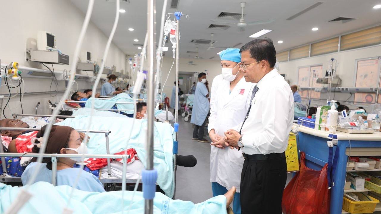 លោកសាស្ត្រាចារ្យរដ្ឋមន្ត្រីបានលើកឡើងទៀតថា យោងស្ថានភាពជាក់ស្តែងដែលមានការកើនឡើងនៃការចូលមកប្រើប្រាស់សេវាសុខាភិបាលសាធារណៈនៅគ្រប់លំដាប់ថ្នាក់ជាពិសេសនៅមន្ទីរពេទ្យជាតិ ថ្នាក់ដឹកនាំស្ថាប័នសុខាភិបាល បានជូនអនុសាសន៍ដល់ប្រធានក្រុមប្រឹក្សាភិបាល និងថ្នាក់ដឹកនាំគ្រឹះស្ថានសាធារណៈរដ្ឋបាលទាំងអស់ នៃមន្ទីរពេទ្យជាតិ ឱ្យចុះអភិបាលកិច្ច និងត្រួតពិនិត្យការងារជាក់ស្តែង ជាពិសេសនៅផ្នែកសង្គ្រោះបន្ទាន់(Emergency) ផ្នែកប្រពោធនកម្មជំងឺធ្ងន់ (ICU) ដើម្បីធានាថាការងារទាំងអស់ប្រព្រឹត្តទៅដោយមានប្រសិទ្ធភាព និងសម្របសម្រួលបានល្អ។