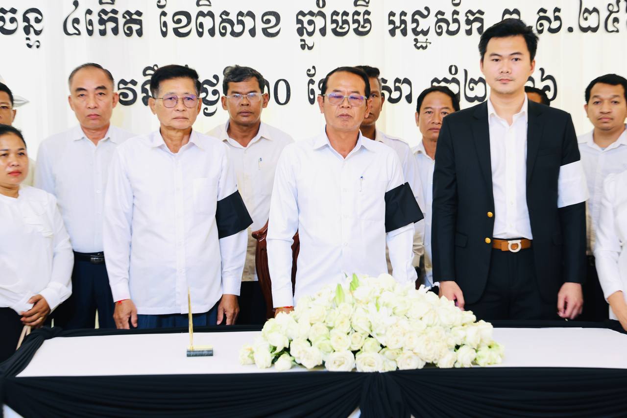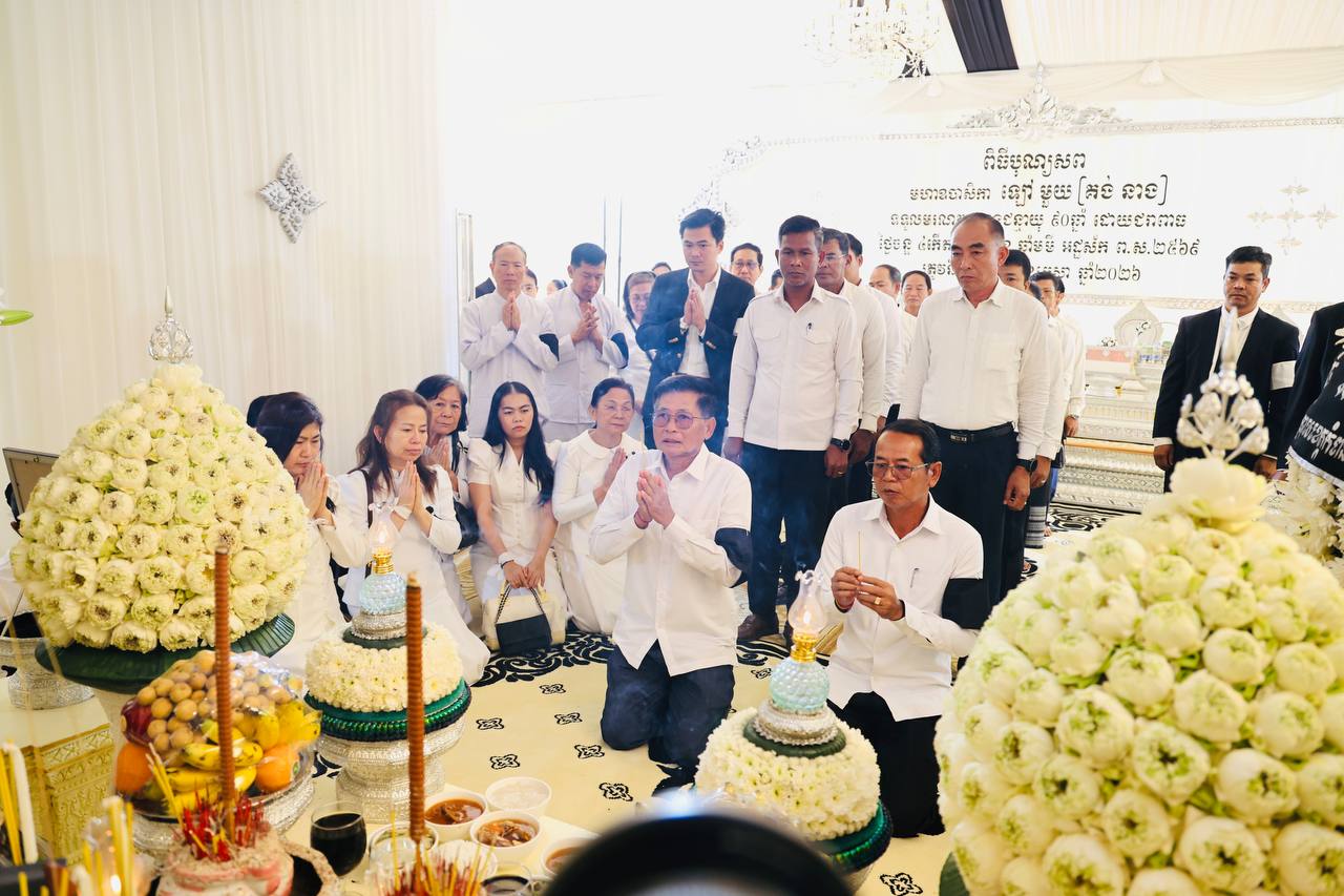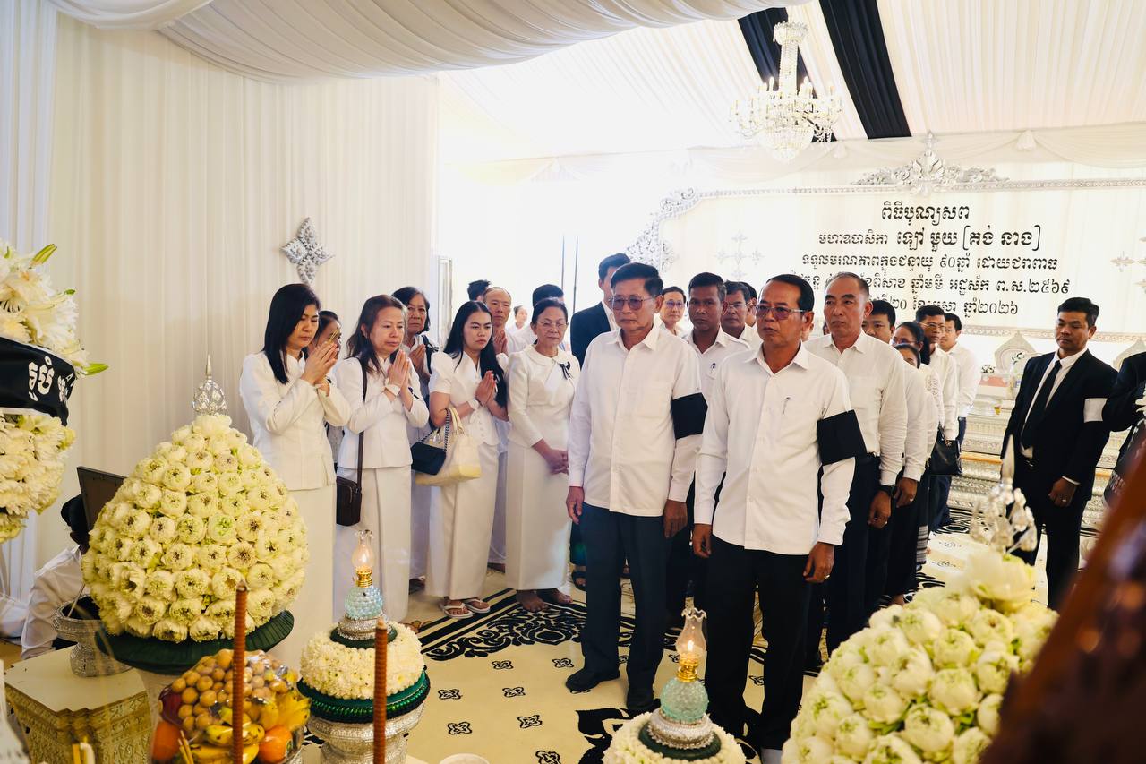 (ភ្នំពេញ)៖ នៅព្រឹកថ្ងៃទី២២ ខែមេសា ឆ្នាំ២០២៦ ប្រតិភូរដ្ឋបាលស្រុកស្ទោង ខេត្តកំពង់ធំ បានអញ្ជើញចូលរួមរំលែកទុក្ខ និងគោរពវិញ្ញាណក្ខន្ធសព ឧបាសិកា ឡៅ មួយ ដែលត្រូវជាម្តាយក្មេករបស់លោក ចាន់ ស៊ីណាត រដ្ឋលេខាធិការក្រសួងធនធានទឹក និងឧតុនិយម និងជាប្រធានក្រុមការងារចុះមូលដ្ឋានស្រុកស្ទោង។