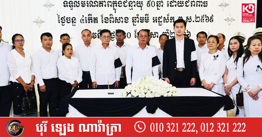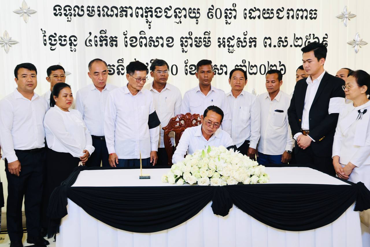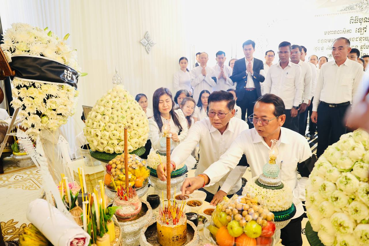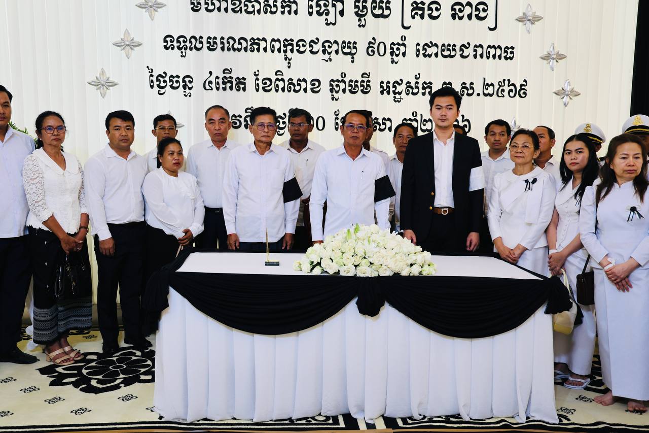 (ភ្នំពេញ)៖ នៅព្រឹកថ្ងៃទី២២ ខែមេសា ឆ្នាំ២០២៦ ប្រតិភូរដ្ឋបាលស្រុកស្ទោង ខេត្តកំពង់ធំ បានអញ្ជើញចូលរួមរំលែកទុក្ខ និងគោរពវិញ្ញាណក្ខន្ធសព ឧបាសិកា ឡៅ មួយ ដែលត្រូវជាម្តាយក្មេករបស់លោក ចាន់ ស៊ីណាត រដ្ឋលេខាធិការក្រសួងធនធានទឹក និងឧតុនិយម និងជាប្រធានក្រុមការងារចុះមូលដ្ឋានស្រុកស្ទោង។