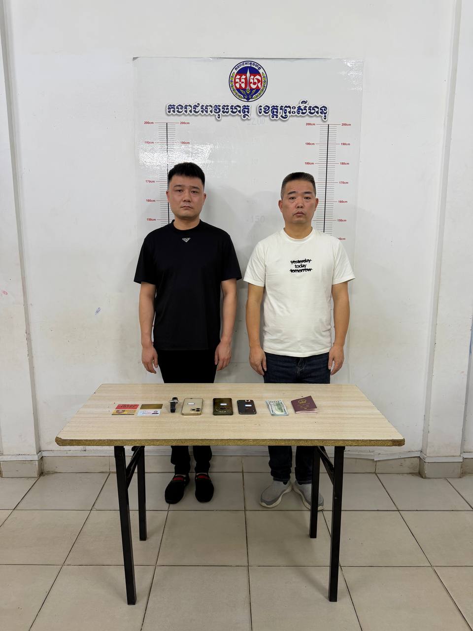 ដោយឡែកនៅវេលាម៉ោង១២:០០នាទី កម្លាំងជំនាញ ចុះទៅចំណុចសណ្ឋាគារ ម៉ីហាវវ៉ាងហ៊្វូ ស្ថិតក្នុងភូមិ១ សង្កាត់លេខ៣ ក្រុង-ខេត្តព្រះសីហនុ បានបន្តឃាត់ខ្លួនជនសង្ស័យ ចំនួន ០២នាក់បន្ថែមទៀត រួមមាន ឈ្មោះ HU GUOFENG ភេទប្រុស អាយុ៤៩ឆ្នាំ ជនជាតិចិន មុខរបរទេសចរណ៍ ស្នាក់នៅភូមិ១ សង្កាត់លេខ៣ ក្រុង-ខេត្តព្រះសីហនុ និង ឈ្មោះ ZHANG ZHIFANG ភេទប្រុស អាយុ៣០ឆ្នាំ ជនជាតិចិន មុខរបរទេសចរណ៍ ស្នាក់នៅភូមិ១ សង្កាត់លេខ៣ ក្រុង-ខេត្តព្រះសីហនុ ។