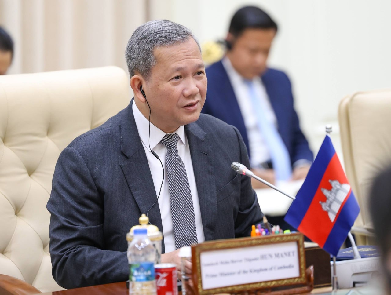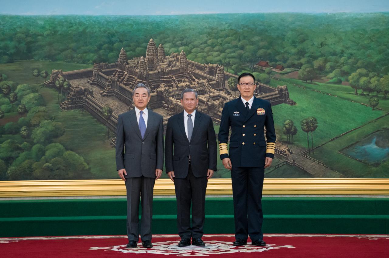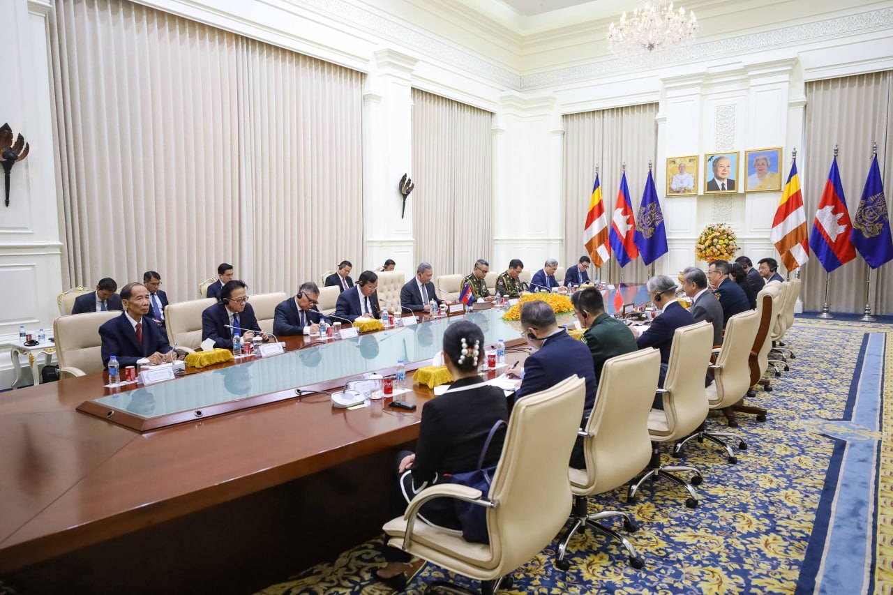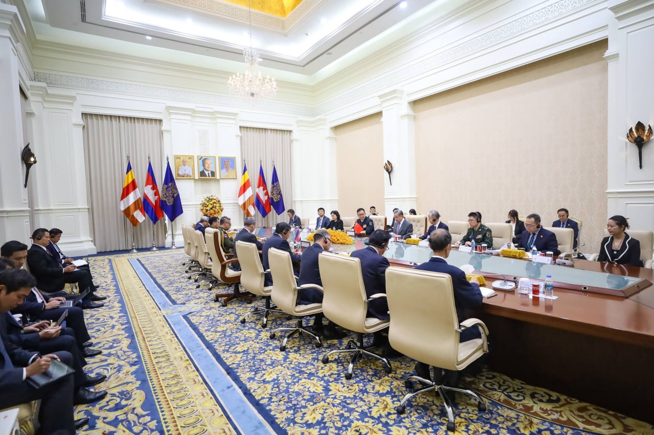 លោក វ៉ាង យី រដ្ឋមន្ត្រីការបរទេសចិន និងនាយឧត្តមនាវី តុង ជុន រដ្ឋមន្ត្រីការពារជាតិរបស់ចិន នៅរសៀលថ្ងៃពុធ ទី២២ ខែមេសា ឆ្នាំ២០២៦នេះ បន្ទាប់ពីអញ្ជើញដល់ប្រទេសកម្ពុជាភ្លាម ក៏បានអញ្ជើញជួបសម្តែងការគួរសម និងពិភាក្សាការងារជាមួយសម្តេចមហាបវរធិបតី ហ៊ុន ម៉ាណែត នៅវិមានរាជរដ្ឋាភិបាល។