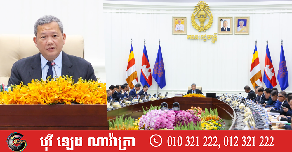 សម្តេចមហាបវរធិបតី ហ៊ុន ម៉ាណែត អញ្ជើញដឹកនាំកិច្ចប្រជុំគណៈរដ្ឋមន្ត្រី ពិនិត្យ និងពិភាក្សាលើសេចក្តីព្រាងច្បាប់ស្តីពីកាតព្វកិច្ចយោធា
