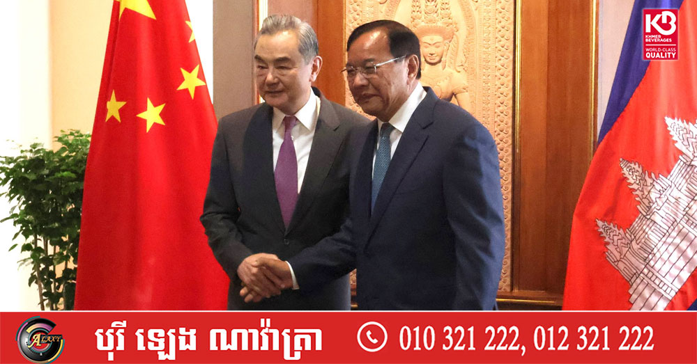 (ភ្នំពេញ)៖ នៅក្នុងជំនួបទ្វេភាគី នៅថ្ងៃទី២៣ ខែមេសា ឆ្នាំ២០២៦នេះ ប្រមុខការទូតកម្ពុជា-ចិន បានប្តេជ្ញាចិត្តដ៏មុតមាំរបស់ខ្លួនក្នុងការពង្រឹងបន្ថែមទៀតនូវកិច្ចសហប្រតិបត្តិការផ្នែកនយោបាយ ការពារជាតិ សន្តិសុខ និងសេដ្ឋកិច្ច ព្រមទាំងបន្តពង្រឹងទំនុកចិត្តផ្នែកនយោបាយដ៏រឹងមាំ និងមិត្តភាពដែកថែបរវាងកម្ពុជា និងចិន។