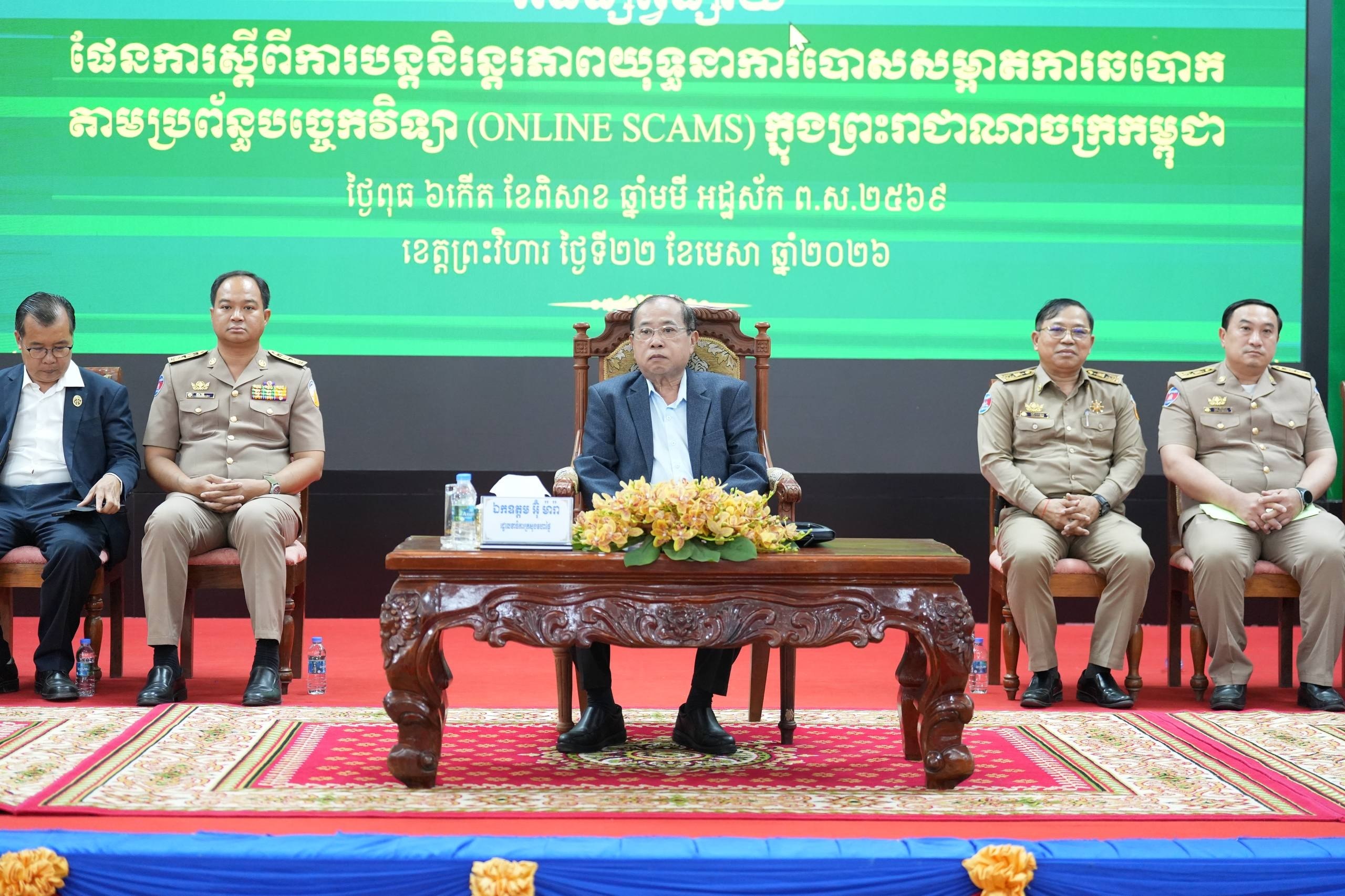 មន្រ្តីជាន់ខ្ពស់ក្រសួងមហាផ្ទៃ ផ្សព្វផ្សាយផែនការពីការបន្តនិរន្តរភាពយុទ្ធនាការបោសសម្អាត ការឆបោកតាមប្រព័ន្ធបច្ចេកវិទ្យានៅខេត្តព្រះវិហារ