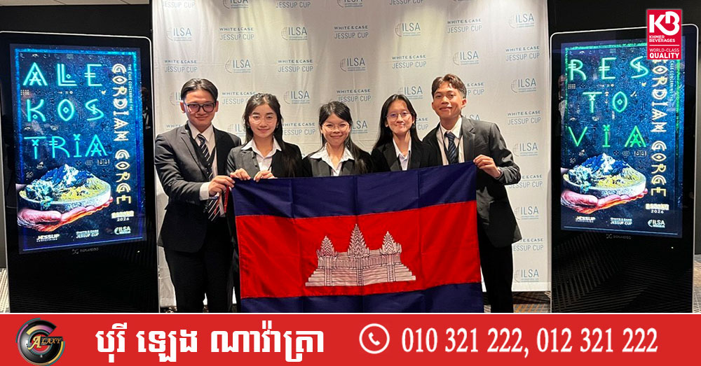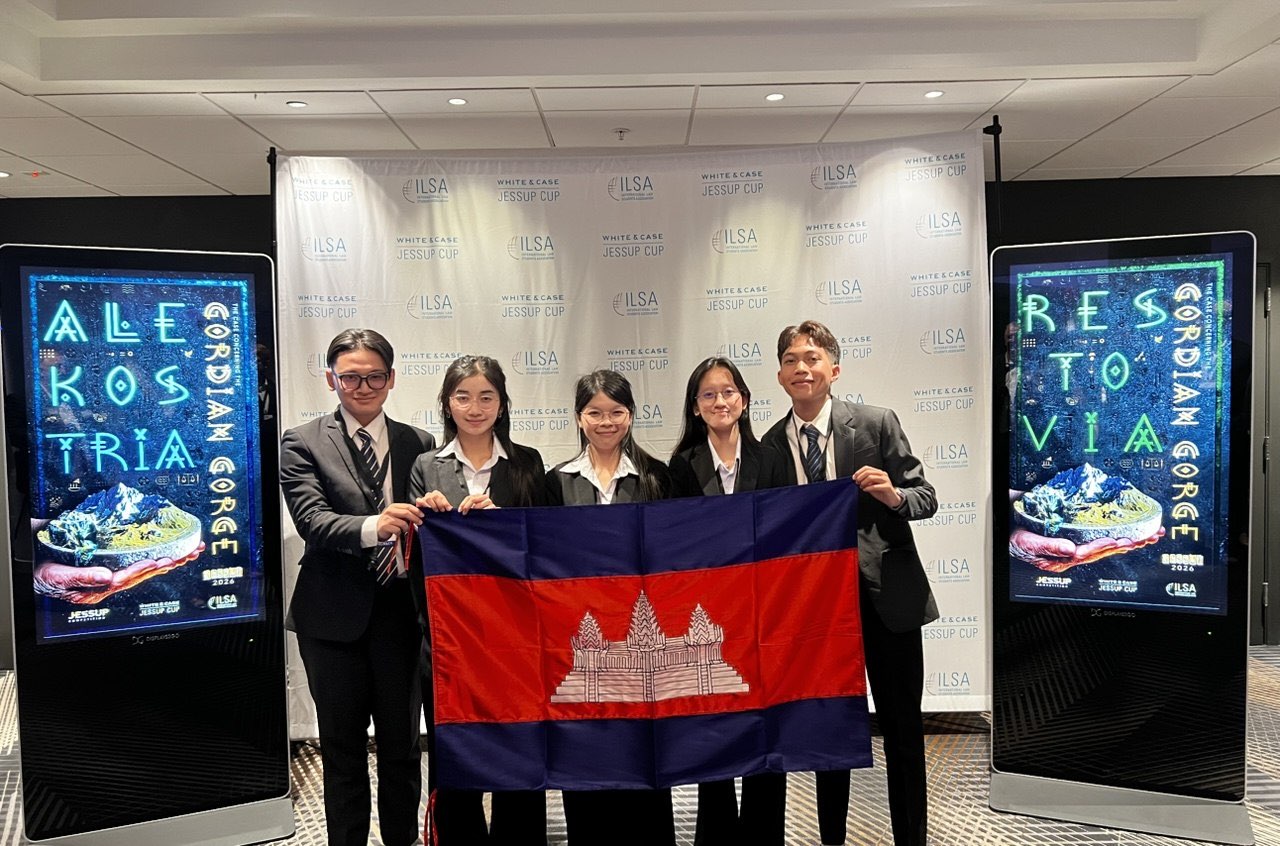 (អាមេរិក)៖ ក្រុមនិស្សិតមកពីកម្មវិធីថ្នាក់បរិញ្ញាបត្រនីតិសាស្រ្ត សិក្សាជាភាសាអង់គ្លេស (ELBBL) នៃសាកលវិទ្យាល័យភូមិន្ទនីតិសាស្ត្រ និងវិទ្យាសាស្ត្រសេដ្ឋកិច្ច ដែលតំណាង ឲ្យព្រះរាជាណាចក្រកម្ពុជា បានទទួលជ័យលាភីពានរង្វាន់ Richard R. Baxter Award សម្រាប់សារណាការពារក្ដីតំណាងរដ្ឋភាគីដើមបណ្ដឹងល្អបំផុតលេខ៣ (3rd Best Applicant Memorial) ក្នុងចំណោមសាកលវិទ្យាល័យជាង៨០០ មកពីជាង១០០ប្រទេស នៅទូទាំងពិភពលោក ដែលបានចូលរួមក្នុងកម្មវិធីប្រកួតសវនាការ ប្រតិដ្ឋនីតិអន្តរជាតិ សាធារណៈ Philip C. Jessup International Law Moot Court Competition ដែលប្រារព្ធឡើងនៅទីក្រុងវ៉ាស៊ីនតោន ឌីស៊ី សហរដ្ឋអាមេរិក កាលពីខែមេសា ឆ្នាំ២០២៦។