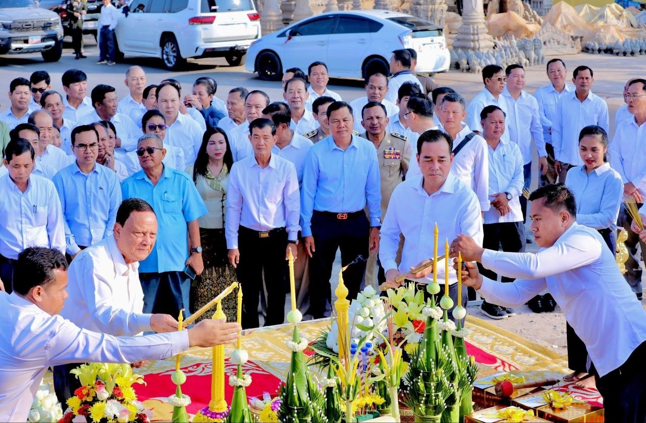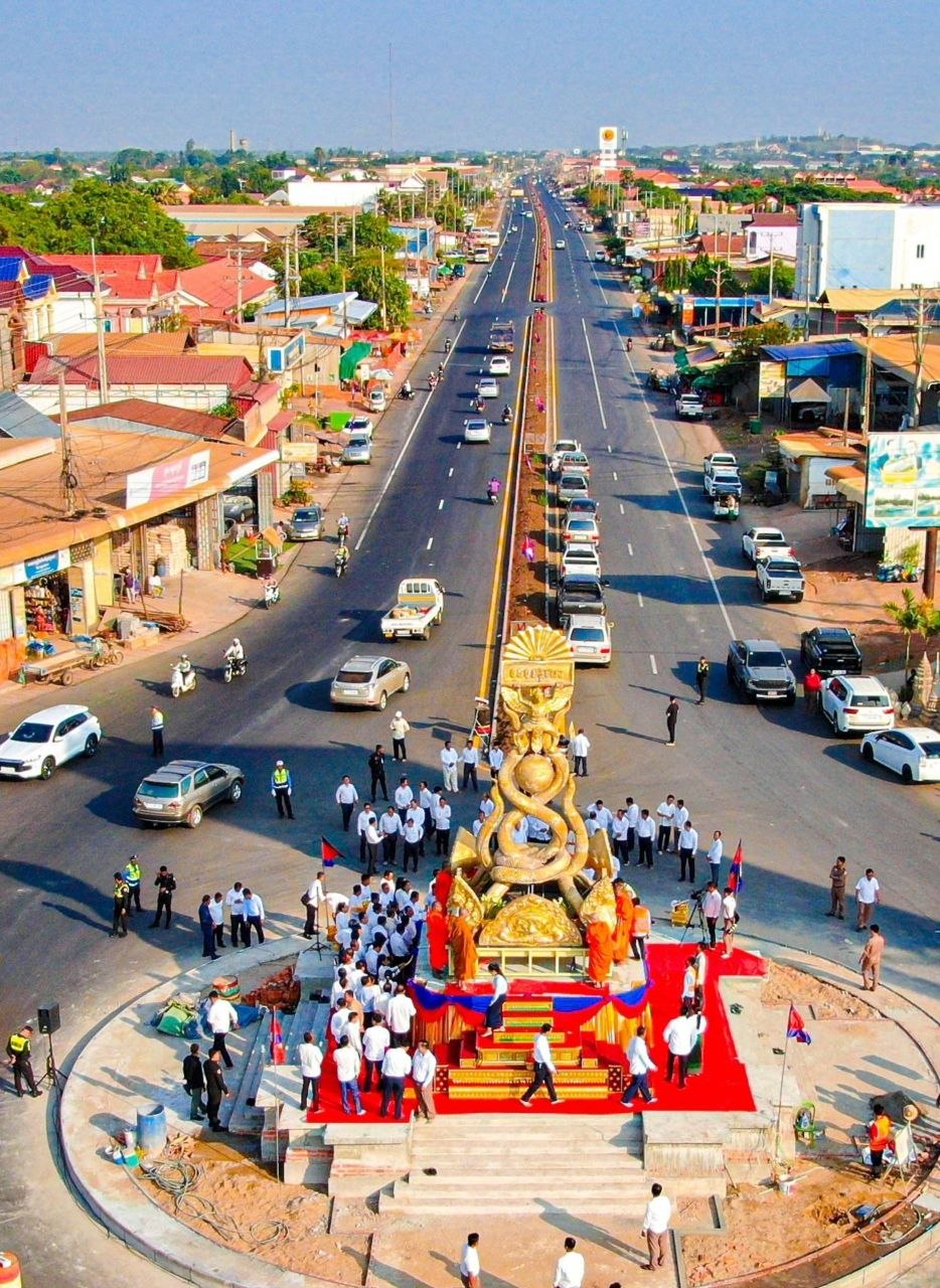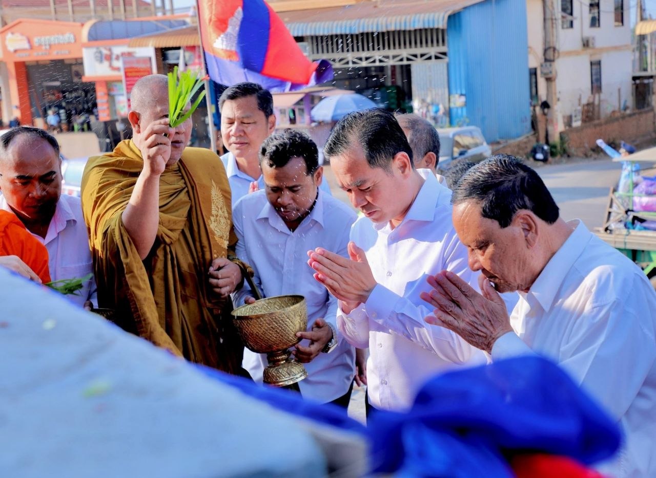 (កំពង់ចាម)៖ លោក ខ្លូត ផន ប្រធានក្រុមប្រឹក្សាខេត្ត និងអភិបាលខេត្តកំពង់ចាម លោក អ៊ុន ចាន់ដា នៅថ្ងៃទី២៣ ខែមេសា ឆ្នាំ២០២៦នេះ បានដឹកនាំមន្ត្រីរាជការ ប្រារព្ធពិធីបញ្ចុះបឋមសិលា ក្រុងពាលីដំឡើងរូបសំណាកនាគព័ន្ធថ្មី និងស្រោចស្រង់បើកព្រះនេត្រនាគ នៅចំណុចរង្វង់មូលនាគព័ន្ធចាស់ (ទល់មុខក្លោងទ្វារចូល វត្តប្រាសាទនគរបានជ័យ) ស្ថិតនៅភូមិនគរបាជ័យ ស្រុកកំពង់សៀម ខេត្តកំពង់ចាម។