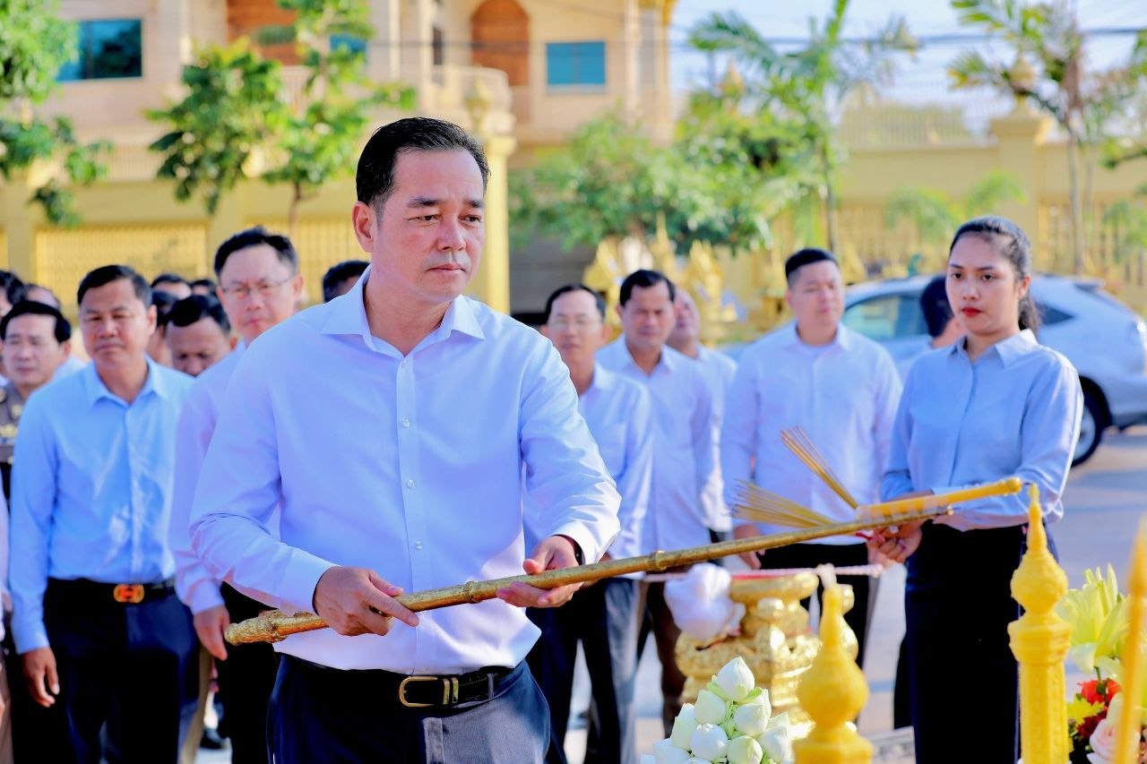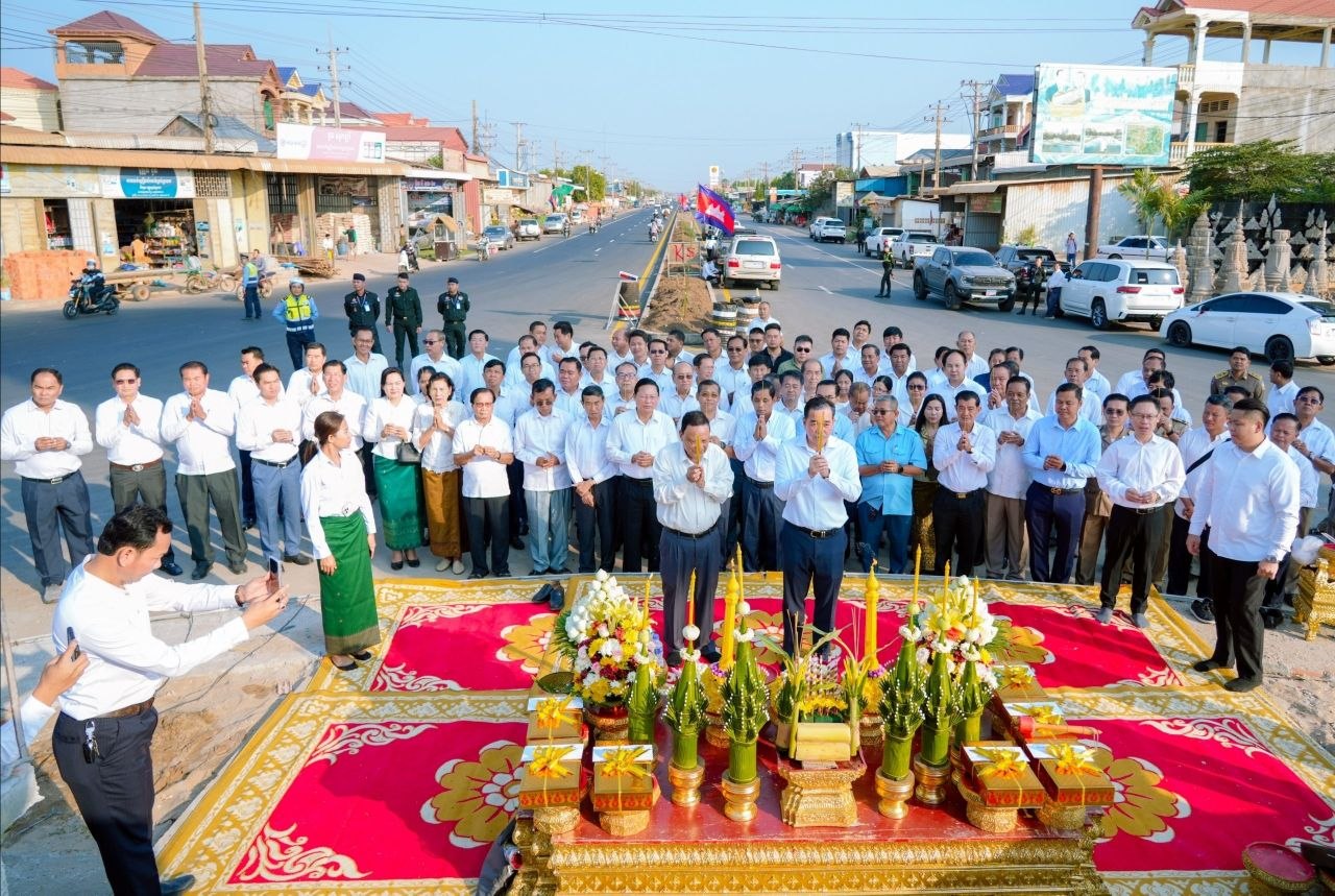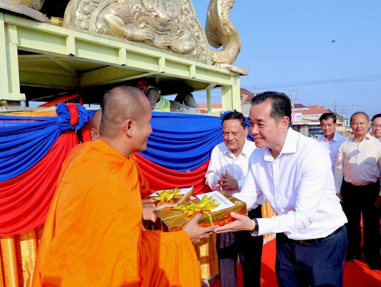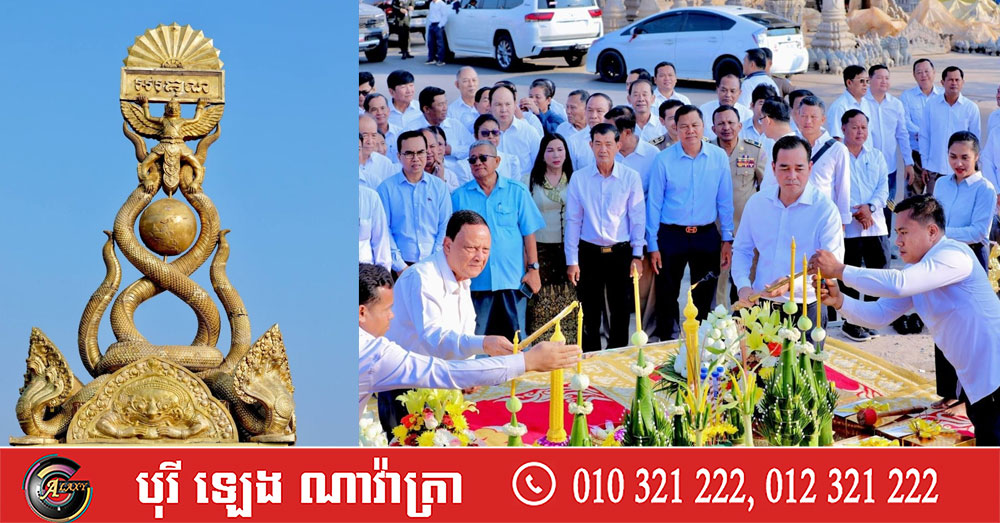 (កំពង់ចាម)៖ លោក ខ្លូត ផន ប្រធានក្រុមប្រឹក្សាខេត្ត និងអភិបាលខេត្តកំពង់ចាម លោក អ៊ុន ចាន់ដា នៅថ្ងៃទី២៣ ខែមេសា ឆ្នាំ២០២៦នេះ បានដឹកនាំមន្ត្រីរាជការ ប្រារព្ធពិធីបញ្ចុះបឋមសិលា ក្រុងពាលីដំឡើងរូបសំណាកនាគព័ន្ធថ្មី និងស្រោចស្រង់បើកព្រះនេត្រនាគ នៅចំណុចរង្វង់មូលនាគព័ន្ធចាស់ (ទល់មុខក្លោងទ្វារចូល វត្តប្រាសាទនគរបានជ័យ) ស្ថិតនៅភូមិនគរបាជ័យ ស្រុកកំពង់សៀម ខេត្តកំពង់ចាម។