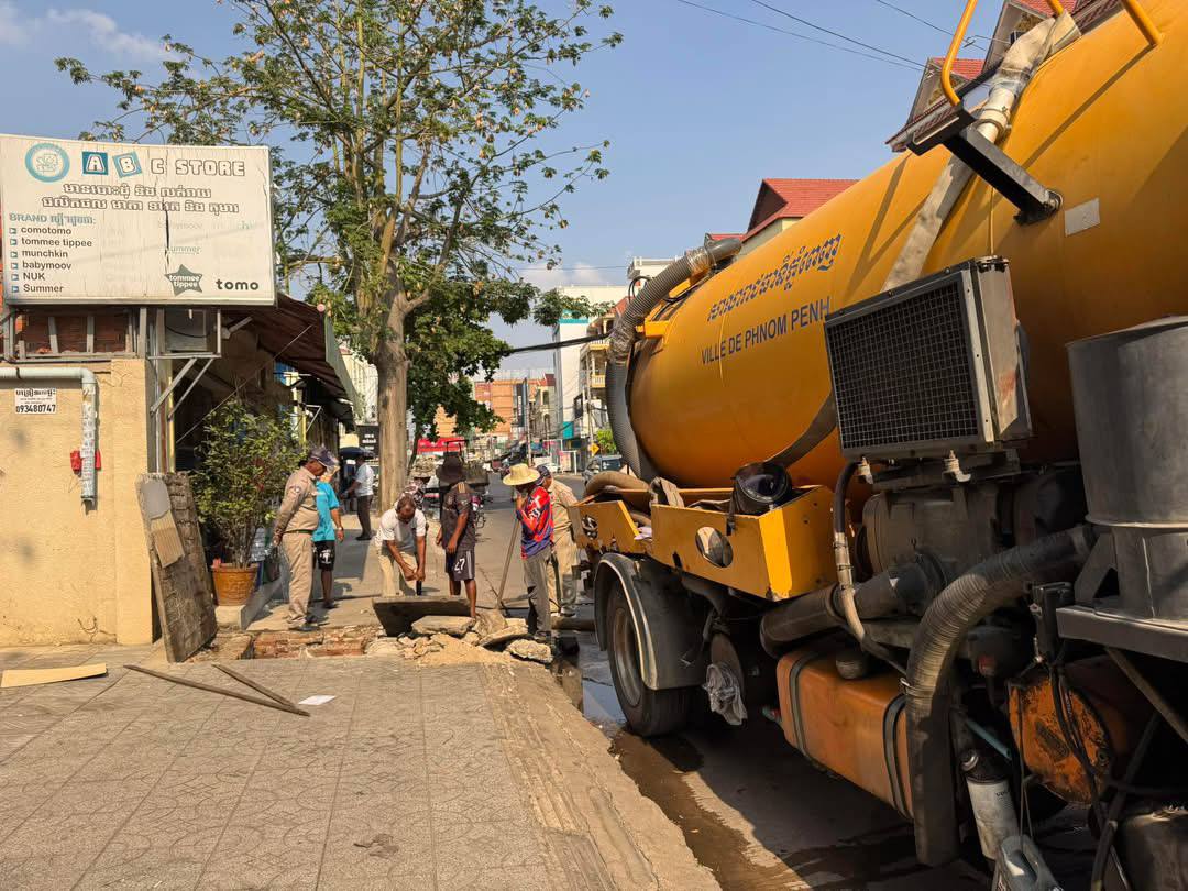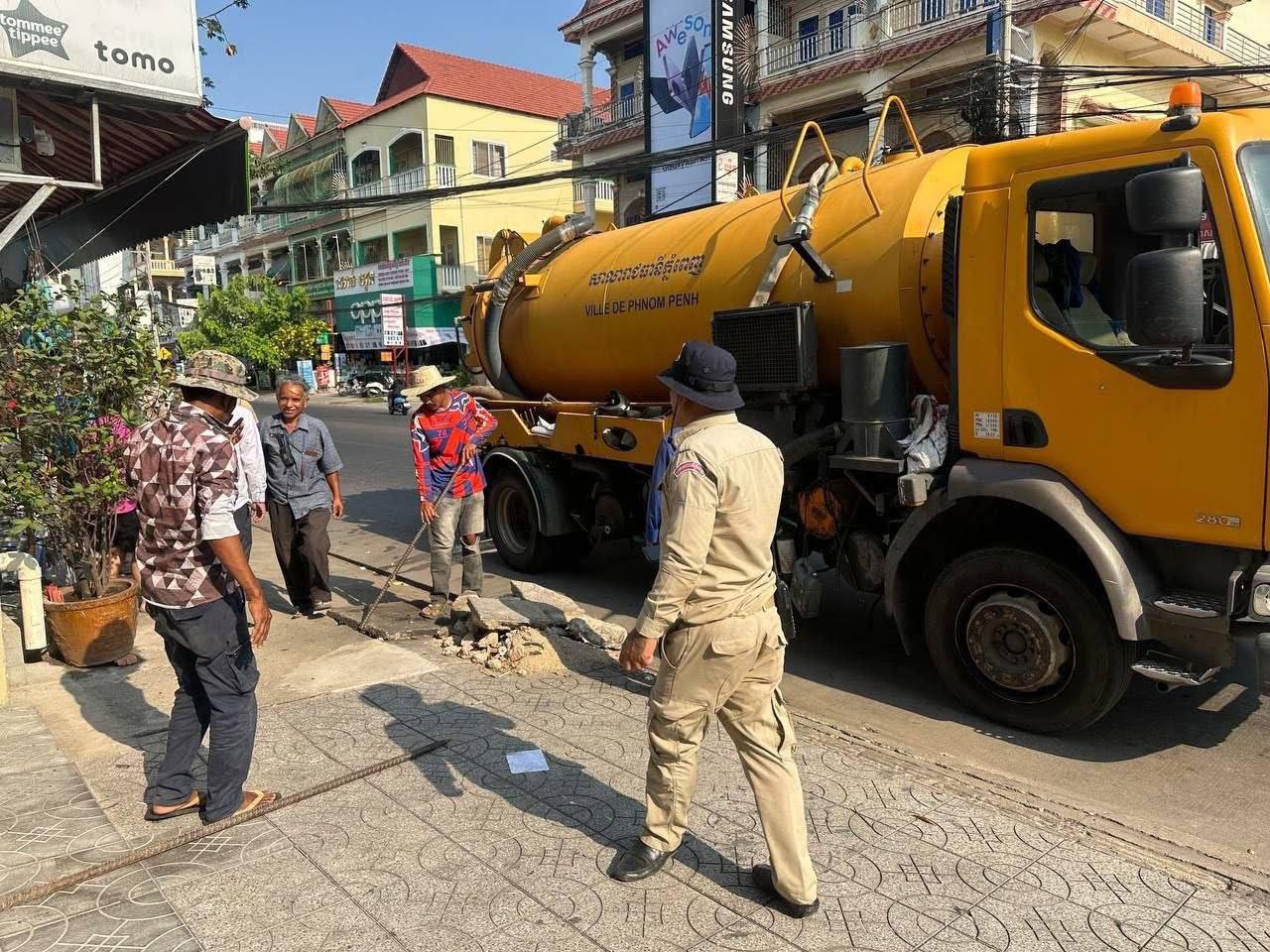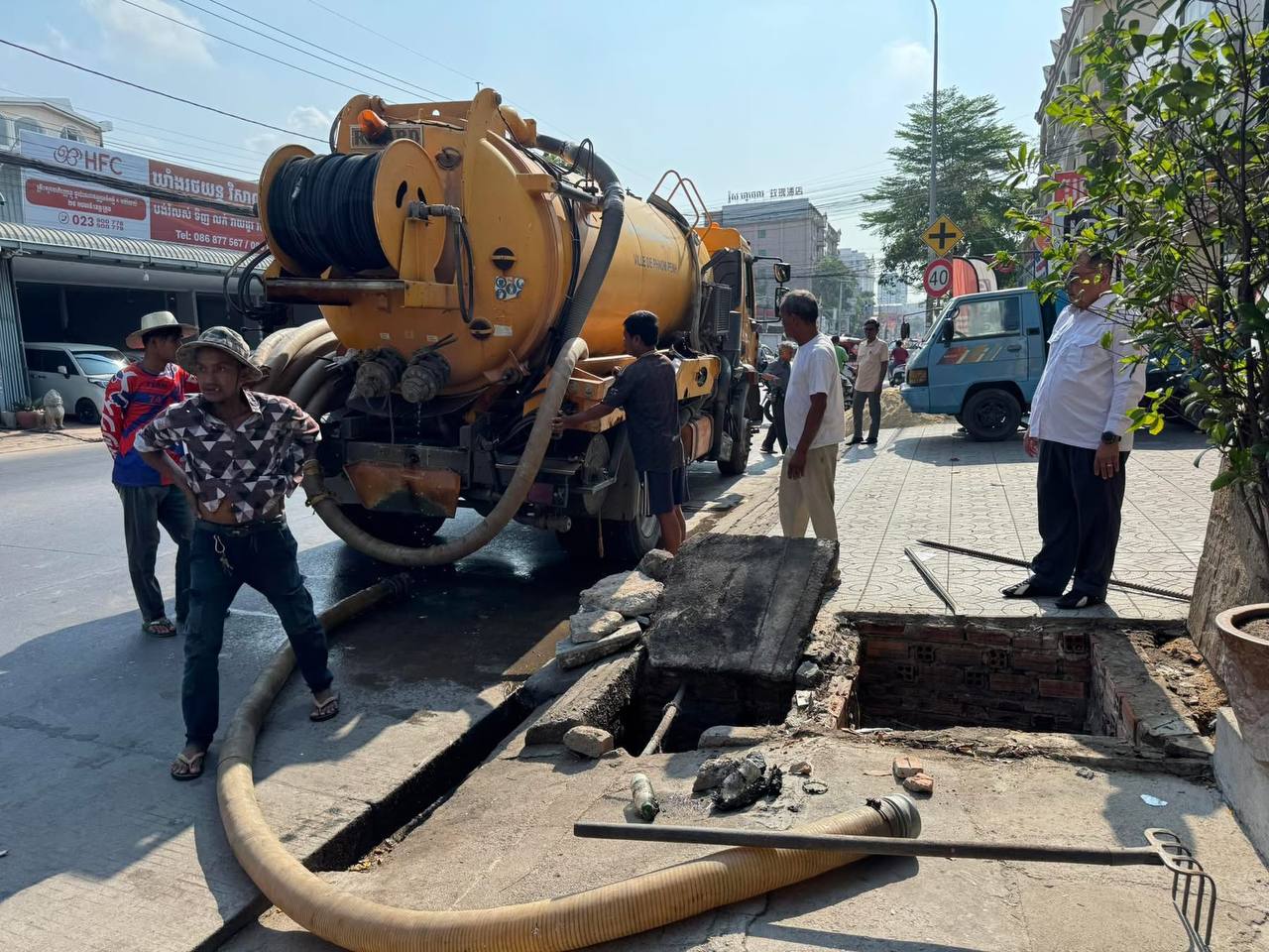 អភិបាលខណ្ឌសែនសុខ ដឹកនាំក្រុមការងារ ដាក់រថយន្តធ្វើការបូមស្តារអណ្តូងលូ និងប្រព័ន្ធលូ តាមបណ្តោយផ្លូវលេខ១៩៨៦ ភូមិភ្នំពេញថ្មី