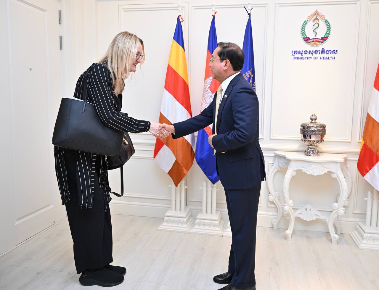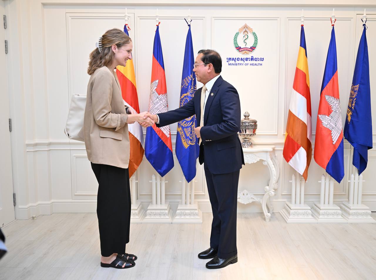 ការបញ្ជាក់ជំហរបែបនេះរបស់លោកស្រី ក្នុងឳកាស ចូលជួបសម្តែងការគួរសម និងពិភាក្សាការងារ ជាមួយលោកសាស្ត្រាចារ្យ ឈាង រ៉ា រដ្ឋមន្ត្រីក្រសួងសុខាភិបាល នៅទីស្តីការក្រសួងសុខាភិបាល នៅរសៀលថ្ងៃពុធ ៦កើត ខែពិសាខ ឆ្នាំមមី អដ្ឋស័ក ព.ស.២៥៦៩ ត្រូវនឹងថ្ងៃទី២២ ខែមេសា ឆ្នាំ២០២៦។