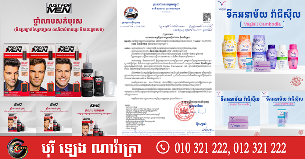 ក្រសួងពាណិជ្ជកម្ម ទទួលស្គាល់សិទ្ធិនាំចូល និងចែកចាយផ្តាច់មុខ លើផលិតផលទឹកអនាម័យម៉ាក «VAGISIL» និងផលិតផលថ្នាំលាបសក់ម៉ាក់ «JUST FOR MAN របស់ក្រុមហ៊ុន វែល អិនធើត្រេដ