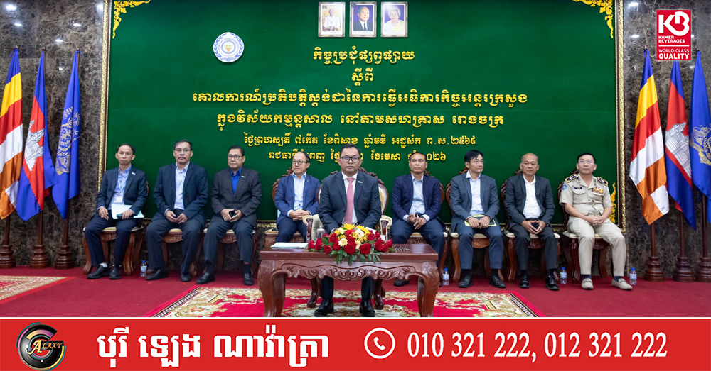 (ភ្នំពេញ)៖ ក្រសួងការងារ និងបណ្តុះបណ្តាលវិជ្ជាជីវៈ បានរៀបចំកិច្ចប្រជុំផ្សព្វផ្សាយស្តីពី «គោលការណ៍ប្រតិបត្តិស្ដង់ដានៃការធ្វើអធិការកិច្ចអន្ដរក្រសួងក្នុងវិស័យកម្មន្ដសាល» នៅតាមសហគ្រាស រោងចក្រ នៅថ្ងៃទី២៣ ខែមេសា ឆ្នាំ២០២៦ ក្រោមអធិបតីភាពលោក សោម ចំណាន រដ្ឋលេខាធិការ តំណាងដ៏ខ្ពង់ខ្ពស់របស់លោក ហេង សួរ រដ្ឋមន្ត្រីក្រសួងការងារ និងបណ្តុះបណ្តាលវិជ្ជាជីវៈ និងជាប្រធានក្រុមការងាររៀបចំក្រុមអធិការកិច្ចអន្តរក្រសួង។