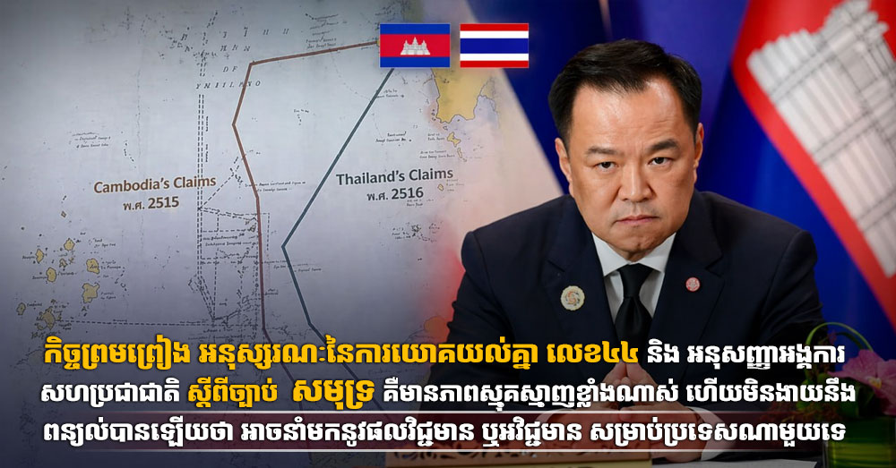 នាយកមជ្ឈមណ្ឌលឯកសារកម្ពុជា៖ កិច្ចព្រមព្រៀងអនុស្សរណៈនៃការយោគយល់គ្នា លេខ៤៤ និង អនុសញ្ញាអង្គការសហប្រជាជាតិ ស្តីពីច្បាប់ សមុទ្រ គឺមានភាពស្មុគស្មាញខ្លាំងណាស់ ហើយមិនងាយនឹងពន្យល់បានឡើយថា អាចនាំមកនូវផលវិជ្ជមាន ឬអវិជ្ជមាន សម្រាប់ប្រទេសណាមួយទេ
