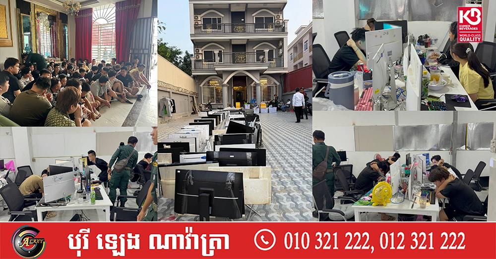 កម្លាំងនគរបាលខេត្តស្វាយរៀង បង្ក្រាបទីតាំង Online Scams នៅក្រុងបាវិត ឃាត់ខ្លួនមនុស្សជិត១០០នាក់ និងវត្ថុតាងប្រព្រឹត្តបទល្មើស
