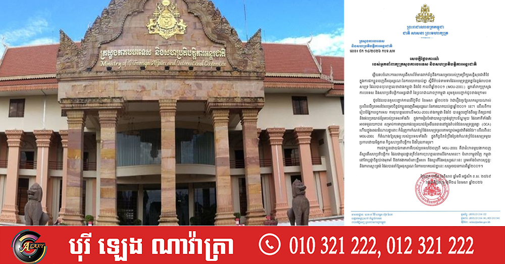 ក្រសួងការបរទេស ចេញសេចក្តីថ្លែងការណ៍ ឆ្លើយតបចំពោះការសម្រេចរបស់ក្រុមប្រឹក្សាសន្តិសុខជាតិថៃ ក្នុងការដកខ្លួនចេញពីអនុស្សរណៈនៃការយោគយល់គ្នា ស្តីពីតំបន់ទាមទារដែនសមុទ្រត្រួតគ្នានៃខ្ពង់រាបបាតសមុទ្រ (MOU-2001) (Video inside)