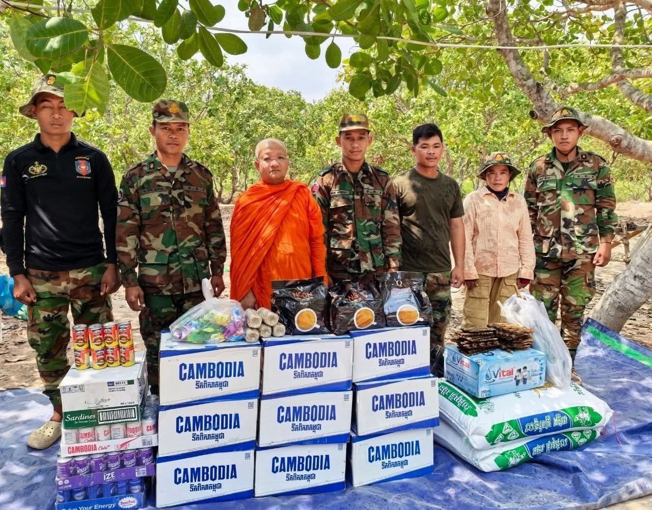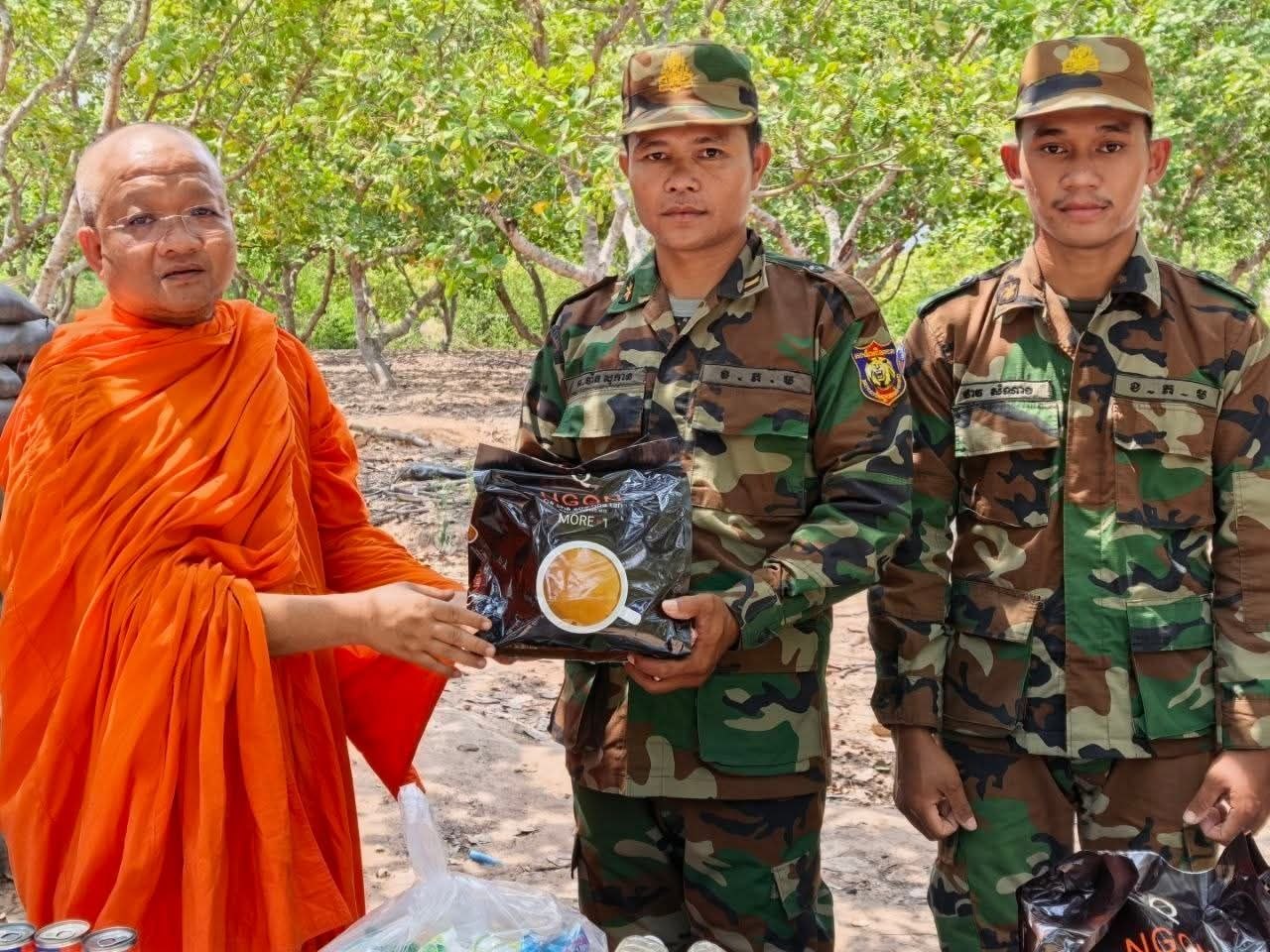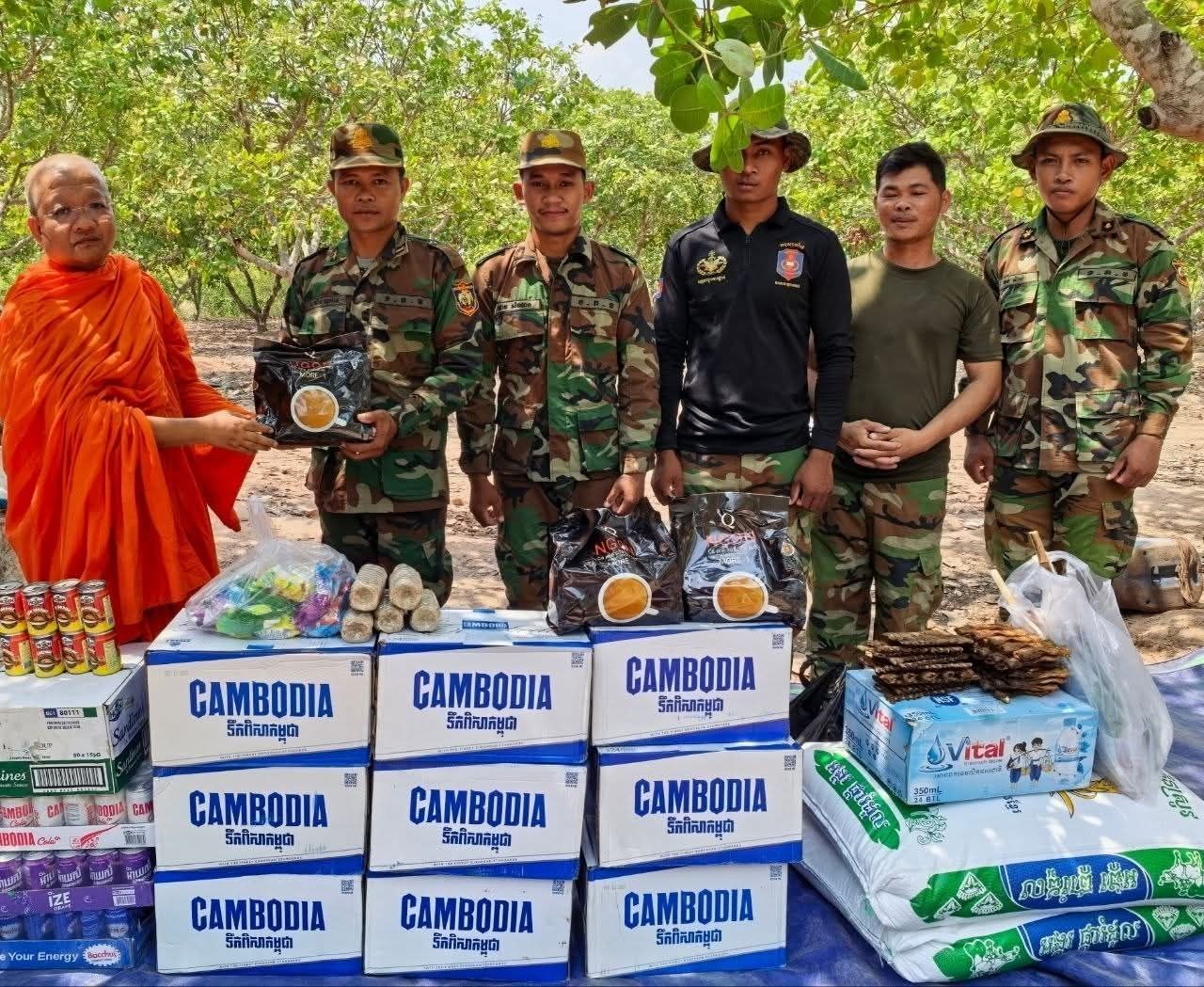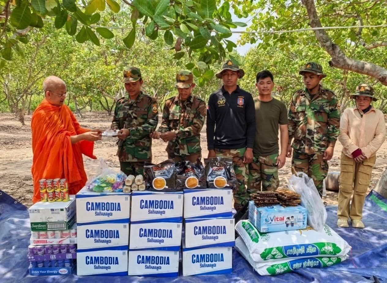 (សៀមរាប)៖ ព្រះគ្រូវិចិត្រវង្សា ហែម គឹមសាន ញាតិធម្មោ ព្រះគ្រូចៅអធិការវត្តប្រាសាទគោកចក និងជាទីប្រឹក្សាពុទ្ធិកសមាគកម្ពុជរដ្ឋ នៅថ្ងៃទី២៤ ខែមេសា ឆ្នាំ២០២៦ បាននិមន្តនាំយកគ្រឿងឧបភោគបរិភោគ មានត្រីឆ្អើ, អង្ករ, ទឹកបរិសុទ្ធ, កាហ្វេ, ភេសជ្ជៈ, ត្រីខ, មាន់អាំង, សាប៊ូ និងថវិកាជូនដល់វីរកងទ័ពជួរមុខ ដែលកំពុងឈរជើងការពារបូរណភាពទឹកដី នៅក្នុងភូមិសាស្ត្រខេត្តឧត្តរមានជ័យ។
