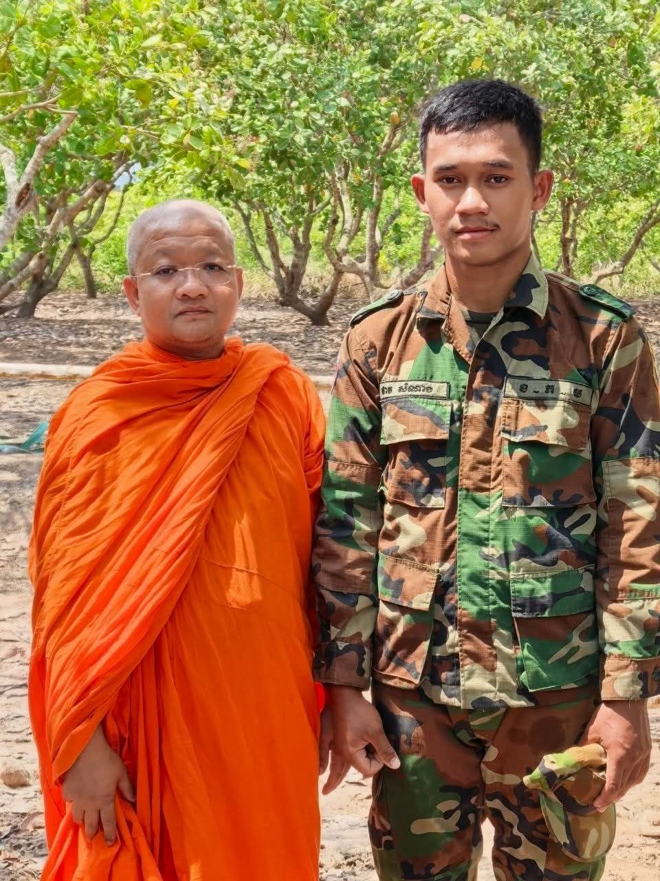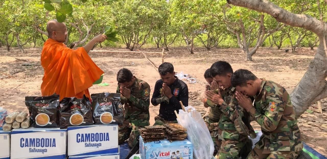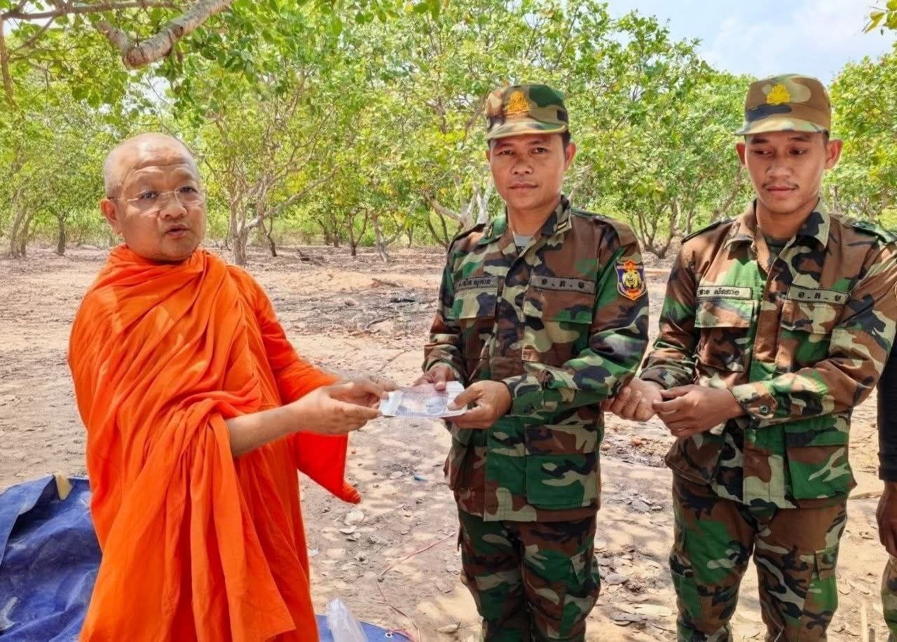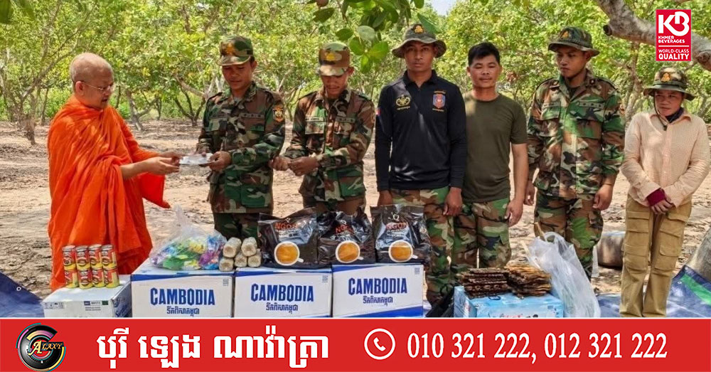 (សៀមរាប)៖ ព្រះគ្រូវិចិត្រវង្សា ហែម គឹមសាន ញាតិធម្មោ ព្រះគ្រូចៅអធិការវត្តប្រាសាទគោកចក និងជាទីប្រឹក្សាពុទ្ធិកសមាគកម្ពុជរដ្ឋ នៅថ្ងៃទី២៤ ខែមេសា ឆ្នាំ២០២៦ បាននិមន្តនាំយកគ្រឿងឧបភោគបរិភោគ មានត្រីឆ្អើ, អង្ករ, ទឹកបរិសុទ្ធ, កាហ្វេ, ភេសជ្ជៈ, ត្រីខ, មាន់អាំង, សាប៊ូ និងថវិកាជូនដល់វីរកងទ័ពជួរមុខ ដែលកំពុងឈរជើងការពារបូរណភាពទឹកដី នៅក្នុងភូមិសាស្ត្រខេត្តឧត្តរមានជ័យ។