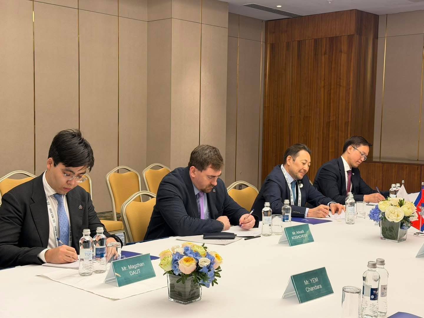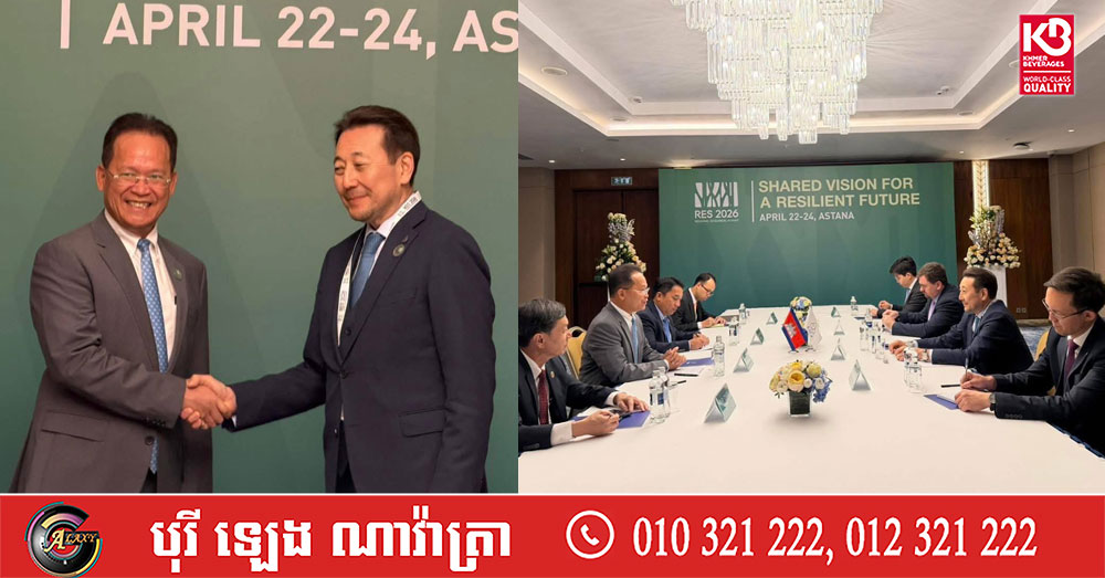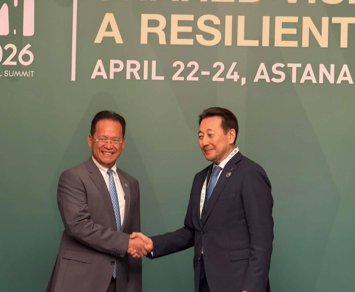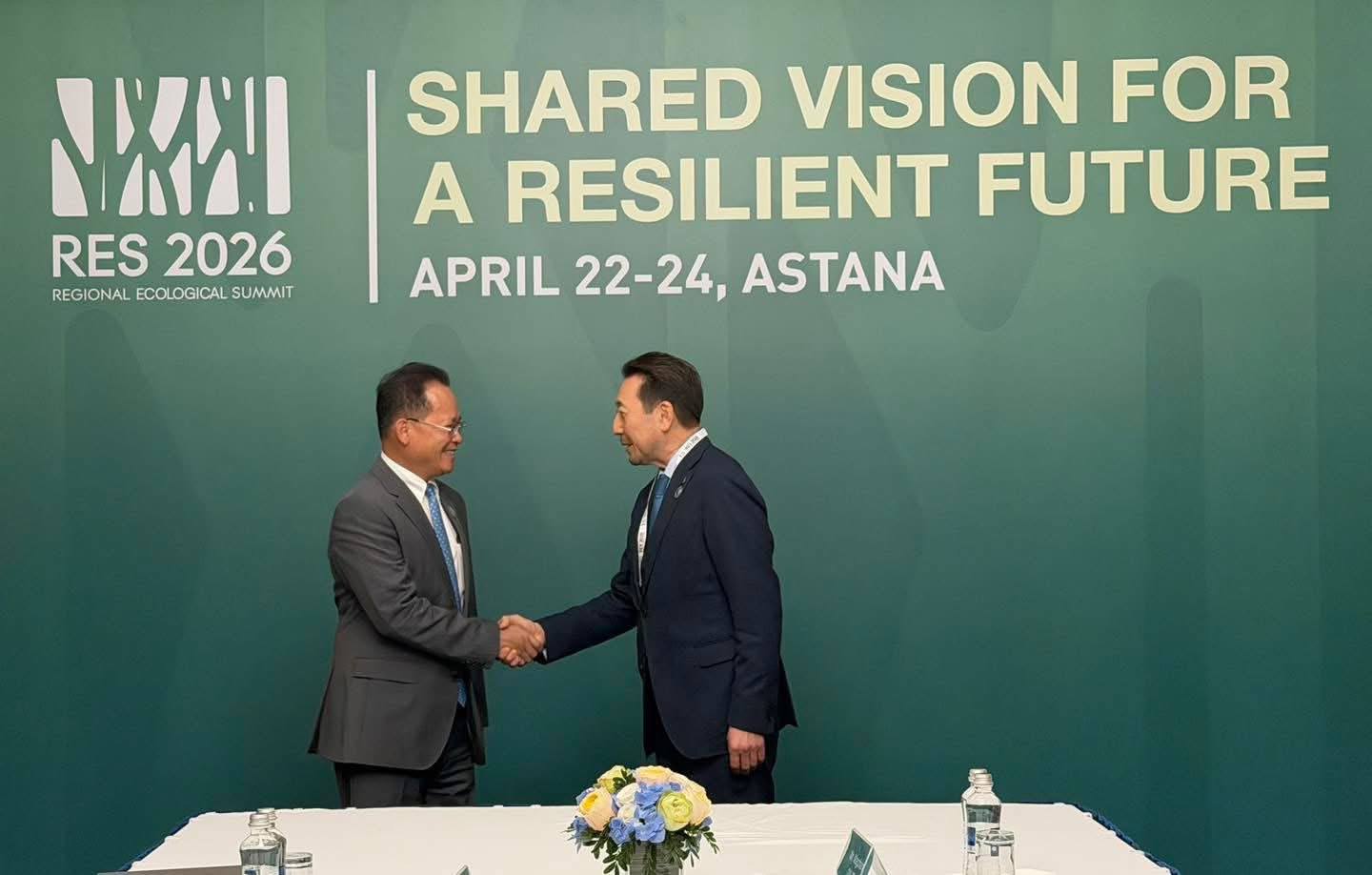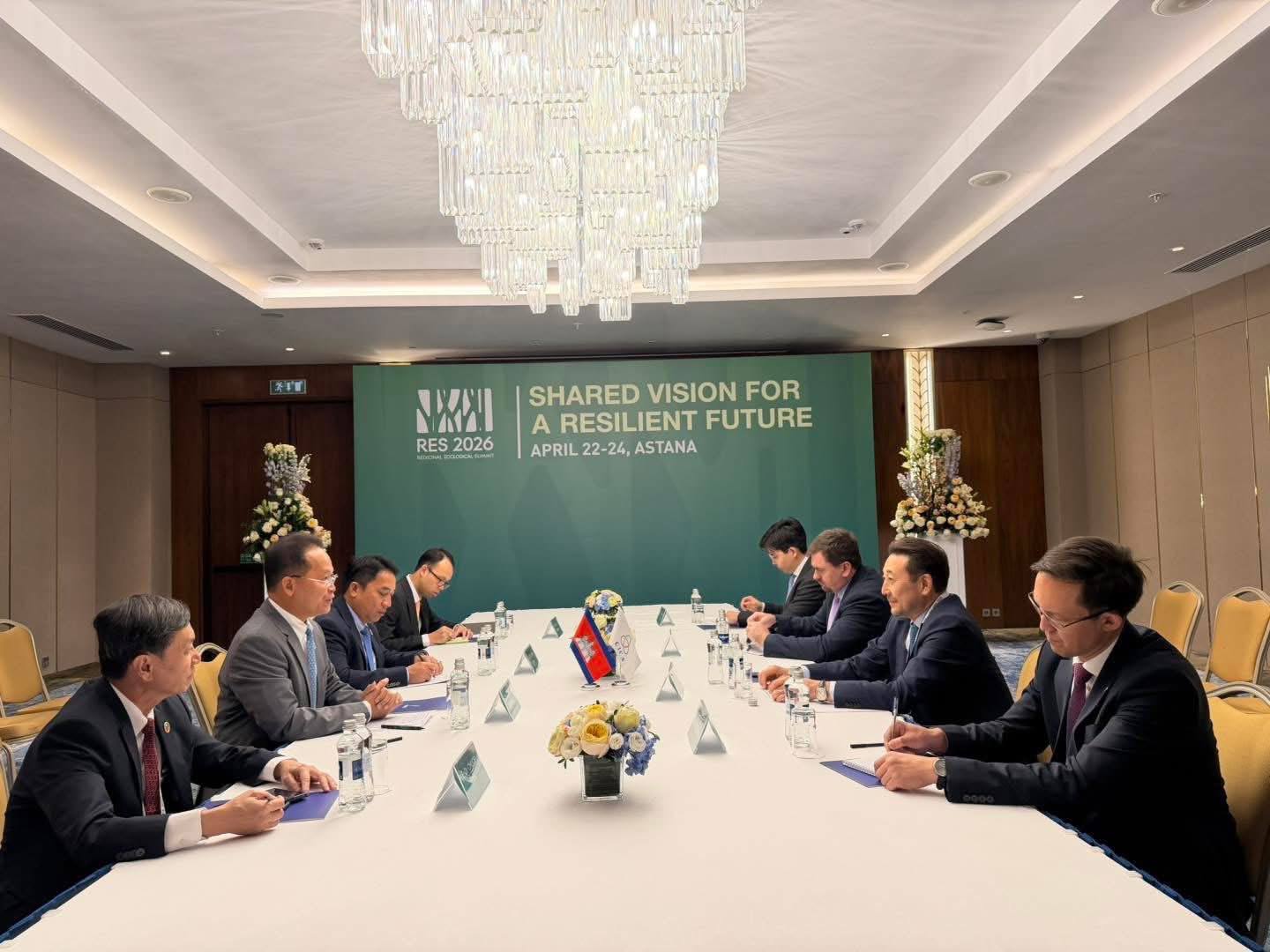 (កាហ្សាក់ស្ថាន)៖ នៅក្នុងកិច្ចប្រជុំកំពូលថ្នាក់តំបន់ ស្តីពីអេកូឡូស៊ី ឆ្នាំ២០២៦ (RES 2026) នៅប្រទេសកាហ្សាក់ស្ថាន លោកបណ្ឌិត អ៊ាង សុផល្លែត រដ្ឋមន្រ្តីក្រសួងបរិស្ថានកម្ពុជា បានអនុញ្ញាតជូនលោក Kairat Sarybay អគ្គលេខាធិការនៃសន្និសីទស្តីពីអន្តរសកម្មភាព និងវិធានការកសាងទំនុកចិត្តនៅអាស៊ី ហៅកាត់ថា CICA ចូលជួបសម្តែងការគួសម និងពិភាក្សាការងារ។