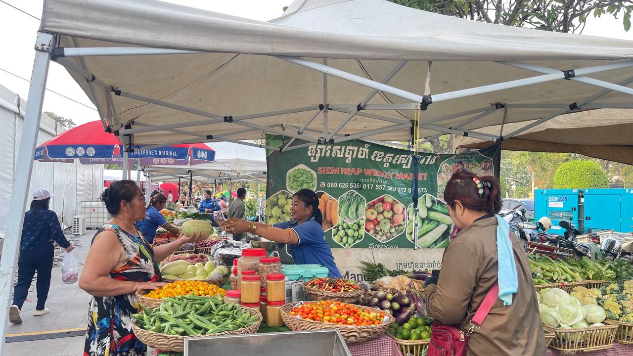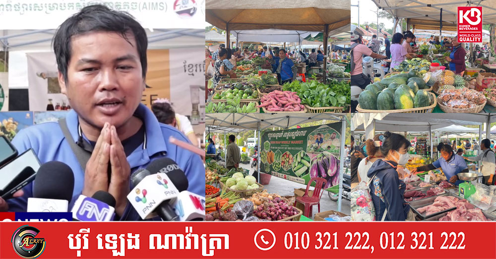 (សៀមរាប)៖ ក្នុងគោលដៅជំរុញការគាំទ្រផលិតផលដែលដាំដុះ និងកែច្នៃដោយកសិករ និងផលិតករខ្មែរ មន្ទីរពាណិជ្ជកម្ម បានដាក់ឲ្យដំណើរការផ្សារលក់ផលិតផលខ្មែរ ឬផ្សារចុងសប្តាហ៍ ដើម្បីលើកស្ទួយជីវភាពកសិករ និងផលិតករខ្មែរ នៅរៀងរាល់ថ្ងៃសៅរ៍-អាទិត្យ ចាប់ពីម៉ោង ៧៖០០ព្រឹក ដល់១២៖០០ថ្ងៃត្រង់។