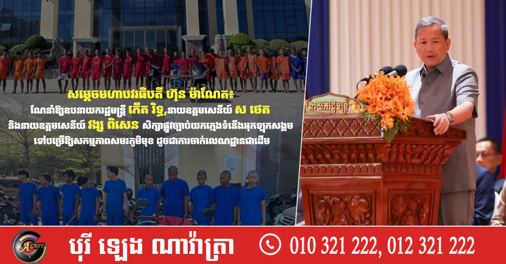 សម្ដេចមហាបវរធិបតី ហ៊ុន ម៉ាណែត៖ ណែនាំឱ្យឧបនាយករដ្ឋមន្ដ្រី កើត រិទ្ធ, នាយឧត្តមសេនីយ៍ ស ថេត និងនាយឧត្តមសេនីយ៍ វង្ស ពិសេន សិក្សាផ្លូវច្បាប់យកក្មេងទំនើងអុកឡុកសង្គម ទៅបម្រើឱ្យសកម្មភាពសមរភូមិមុខ ដូចជាការចាក់លេណដ្ឋានជាដើម