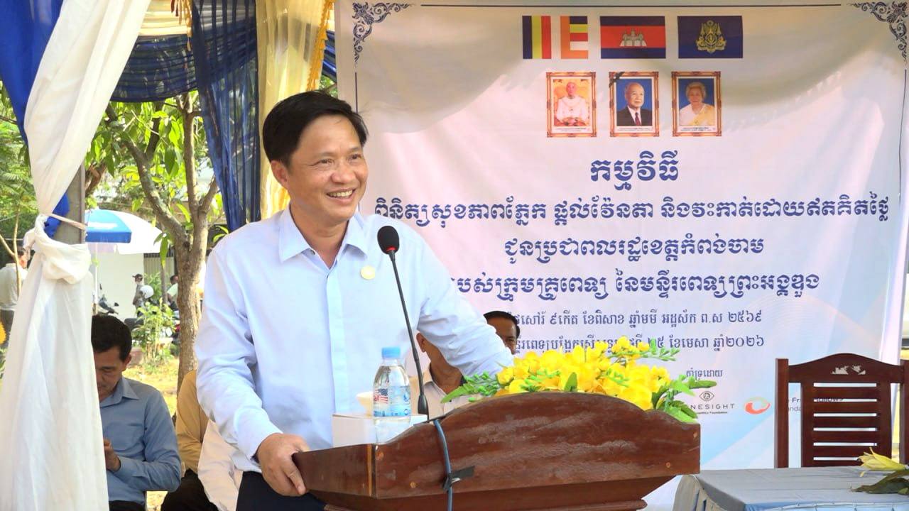 នាយកមន្ទីរពេទ្យព្រះអង្គឌួង ដឹកនាំក្រុមគ្រូពេទ្យ ចុះពិនិត្យភ្នែក ផ្តល់វ៉ែនតា និងវះកាត់ ដោយឥតគិតថ្លៃ ជូនពលរដ្ឋខេត្តកំពង់ចាម