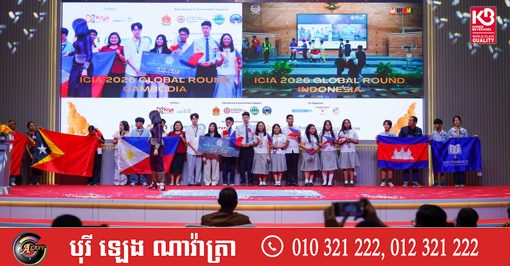 (ភ្នំពេញ)៖ ក្រសួងបរិស្ថាន នៅថ្ងៃទី២៦ ខែមេសា ឆ្នាំ២០២៦ បានចូលរួមគាំទ្រយ៉ាងពេញទំហឹង និងប្រកបដោយជោគជ័យ ក្នុងព្រឹត្តិការណ៍ពានរង្វាន់គំនិតច្នៃប្រឌិត និងនវានុវត្តន៍អន្តរជាតិ (ICIA) ជុំសកល ឆ្នាំ២០២៦ ដែលប្រព្រឹត្តទៅចាប់ពីថ្ងៃទី២៤ ដល់ទី២៦ ខែមេសា ឆ្នាំ២០២៦ នៅរាជធានីភ្នំពេញ។