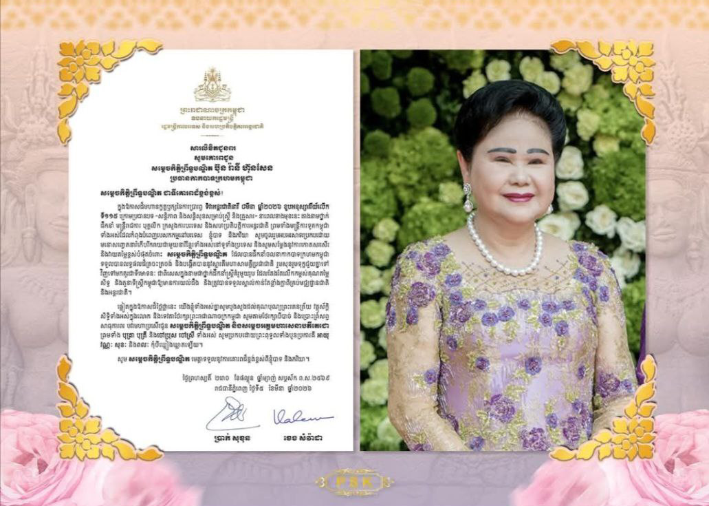 ឧបនាយករដ្ឋមន្ត្រី ប្រាក់ សុខុន ផ្ញើសារលិខិតជូនពរ សម្តេចកិត្តិព្រឹទ្ធបណ្ឌិត ប៊ុន រ៉ានី ហ៊ុនសែន ក្នុងឱកាសប្រារព្ធខួបលើកទី ១១៥ ទិវាអន្តរជាតិនារី ៨មីនា ឆ្នាំ២០២៦