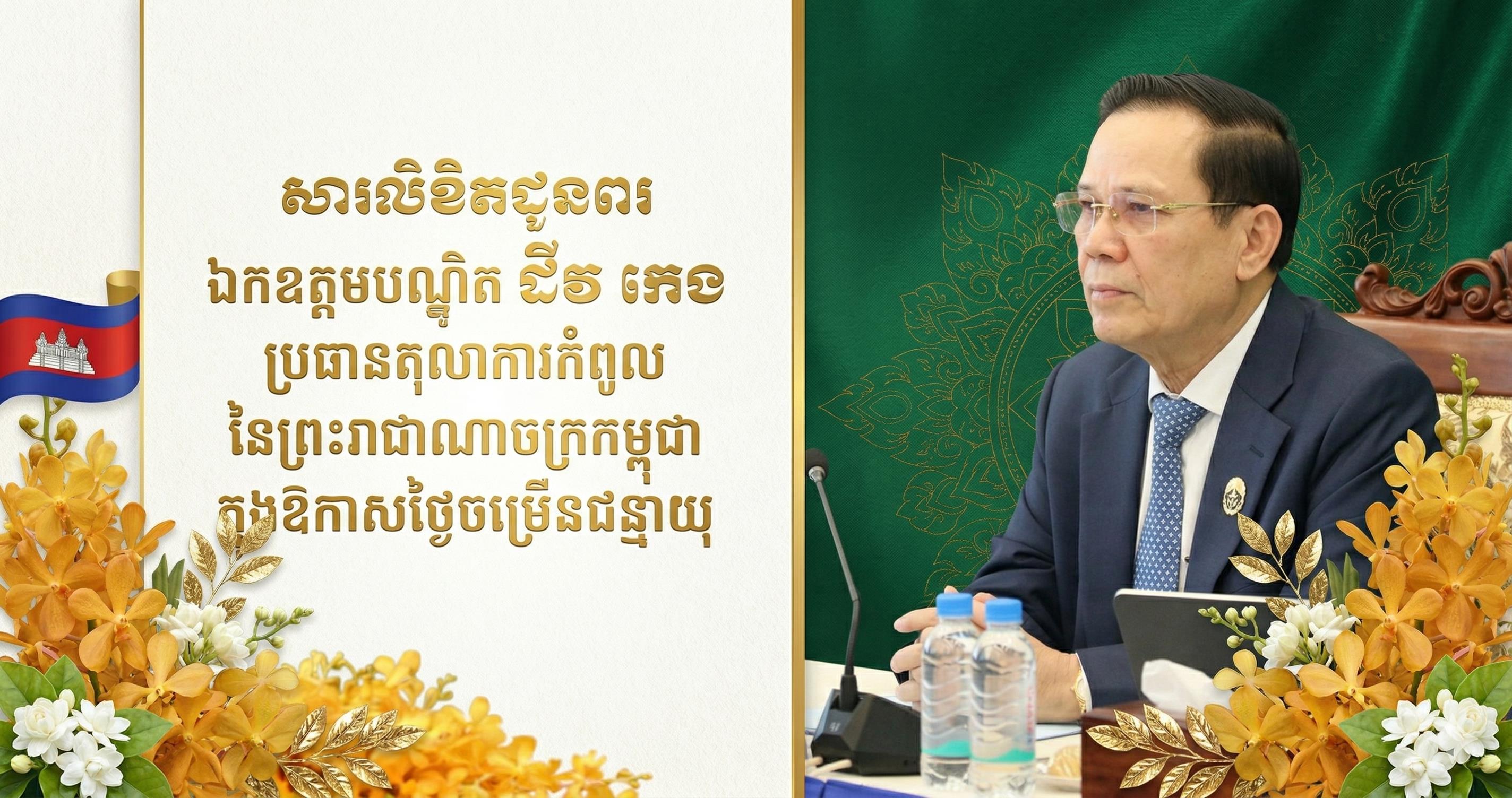 (ភ្នំពេញ)៖ ឯកឧត្តម ម៉ក់ ជីតូ រដ្ឋលេខាធិការក្រសួងមហាផ្ទៃ បានផ្ញើសារលិខិតជូនពរ ឯកឧត្តមបណ្ឌិត ជីវ កេង ប្រធានតុលាការកំពូល នៃព្រះរាជាណាចក្រកម្ពុជា ក្នុងឱកាសដ៏បវរសួស្តី សិរីមង្គលមហាប្រសើរ នៃពិធីចម្រើនជន្មាយុ ដែលប្រព្រឹត្តទៅនៅថ្ងៃសៅរ៍ ១០កើត ខែចេត្រ ឆ្នាំម្សាញ់ សប្តស័ក ពុទ្ធសករាជ ២៥៦៩ ត្រូវនឹងថ្ងៃទី២៨ ខែមីនា ឆ្នាំ២០២៦។