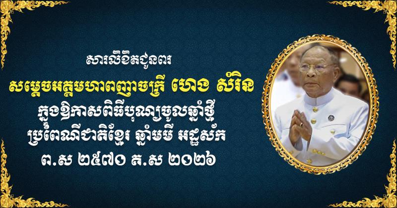 (ភ្នំពេញ)៖ សម្តេចមហាមន្ត្រី គុយ សុផល ឧបនាយករដ្ឋមន្ត្រី និងជារដ្ឋមន្ត្រីក្រសួងព្រះបរមរាជវាំង សូមផ្ញើសារលិខិតគោរពជូនពរ សម្តេចអគ្គមហាពញាចក្រី ហេង សំរិន ប្រធានកិត្តិយសនៃក្រុមឧត្តមប្រឹក្សាផ្ទាល់ព្រះមហាក្សត្រ ក្នុងឱកាសពិធីបុណ្យចូលឆ្នាំថ្មី ប្រពៃណីជាតិខ្មែរ ឆ្នាំមមី អដ្ឋស័ក ពុទ្ធសករាជ ២៥៦៩។