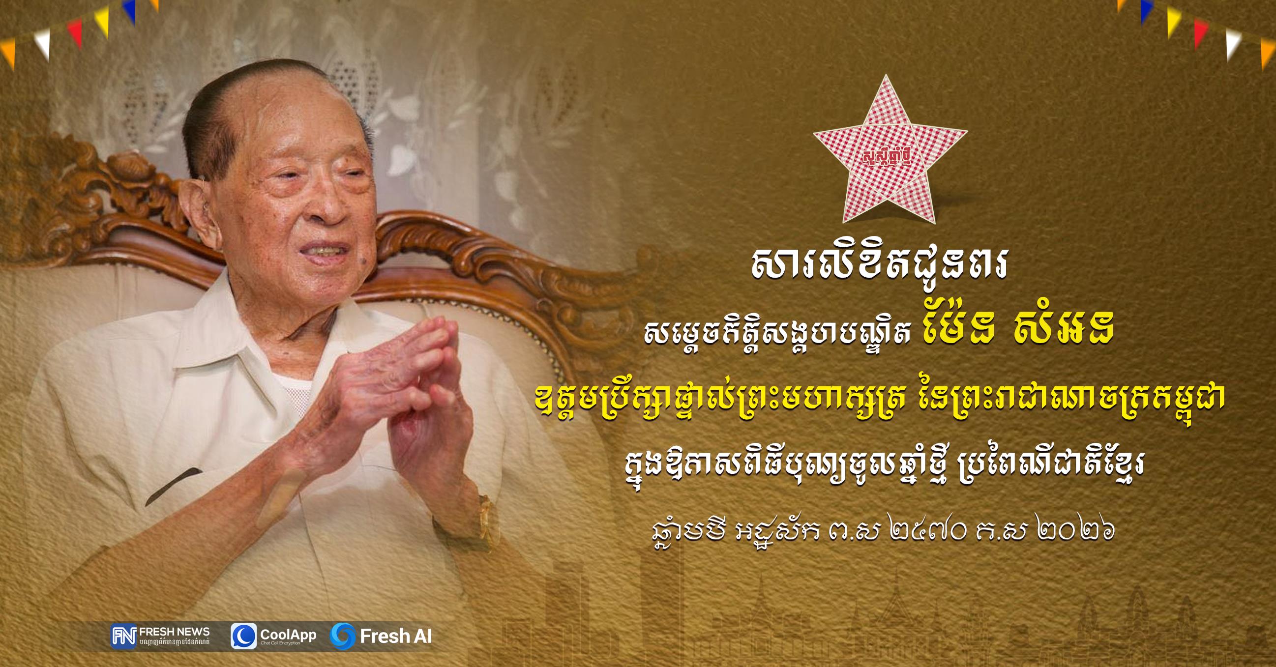 សារលិខិតរបស់សម្តេចមហាមន្ត្រី គុយ សុផល មានខ្លឹមសារដូច្នេះថា៖ «នៅក្នុងឱកាសដ៏មហានក្ខត្តឫក្ស នៃពិធីបុណ្យចូលឆ្នាំថ្មី ប្រពៃណីជាតិខ្មែរ ឆ្នាំមមី អដ្ឋស័ក ព.ស.២៥៧០ គ.ស.២០២៦ តាងនាមថ្នាក់ដឹកនាំ មន្ត្រីរាជការ បុគ្គលិក កម្មករ និងកងកម្លាំងនគរបាល ទាំងអស់ ដែលកំពុងបម្រើការងារនៅក្នុងព្រះបរមរាជវាំង ខ្ញុំបាទមានសេចក្តីសោមនស្សរីករាយ សូមគោរពជូនពរជ័យ បវរមហាប្រសើរ ជូន សម្តេច ឥស្សរវិទេសបញ្ញា សូមបានប្រកបនូវសេចក្តីសុខ សេចក្តីចម្រើនគ្រប់ប្រការ និងសូមសម្រេចបាននូវជោគជ័យថ្មីៗបន្ថែមទៀត ដើម្បីជាឧត្តមប្រយោជន៍ ជូនប្រជាជាតិ និងប្រជាជនកម្ពុជា។