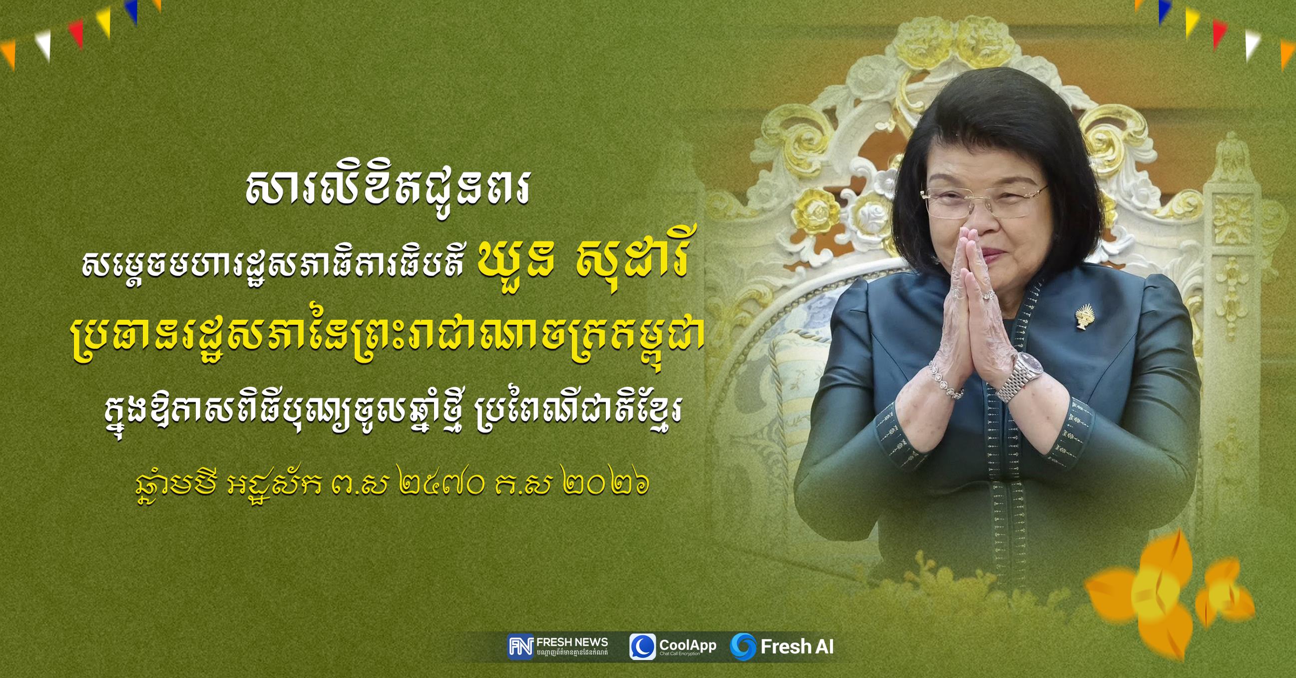 លោកជំទាវបណ្ឌិត ជា សិរី ផ្ញើសារលិខិតគោរពជូនពរ សម្តេចមហារដ្ឋសភាធិការធិបតី ឃួន សុដារី ក្នុងឱកាសពិធីបុណ្យចូលឆ្នាំថ្មី ប្រពៃណីជាតិខ្មែរ ឆ្នាំមមី